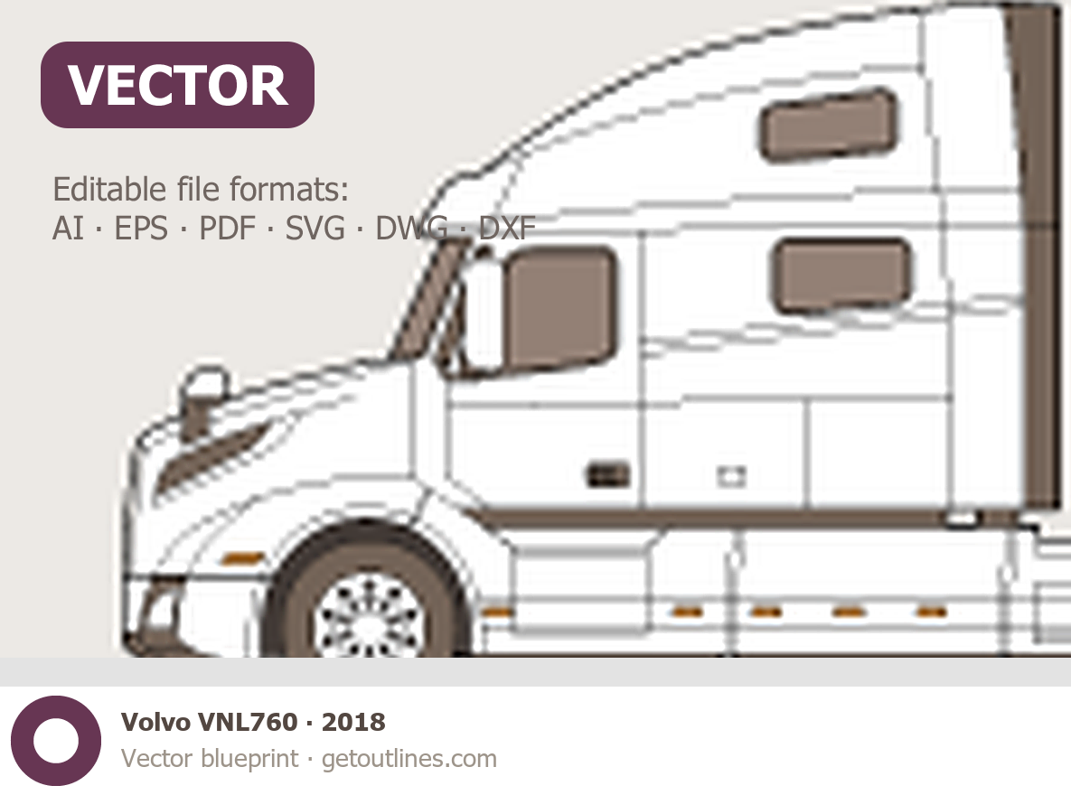 This 2018 Volvo VNL760 Heavy Truck blueprint helps designers, wrap studios, and 3D artists simplify their workflow and save valuable time for creative work instead of routine tasks.