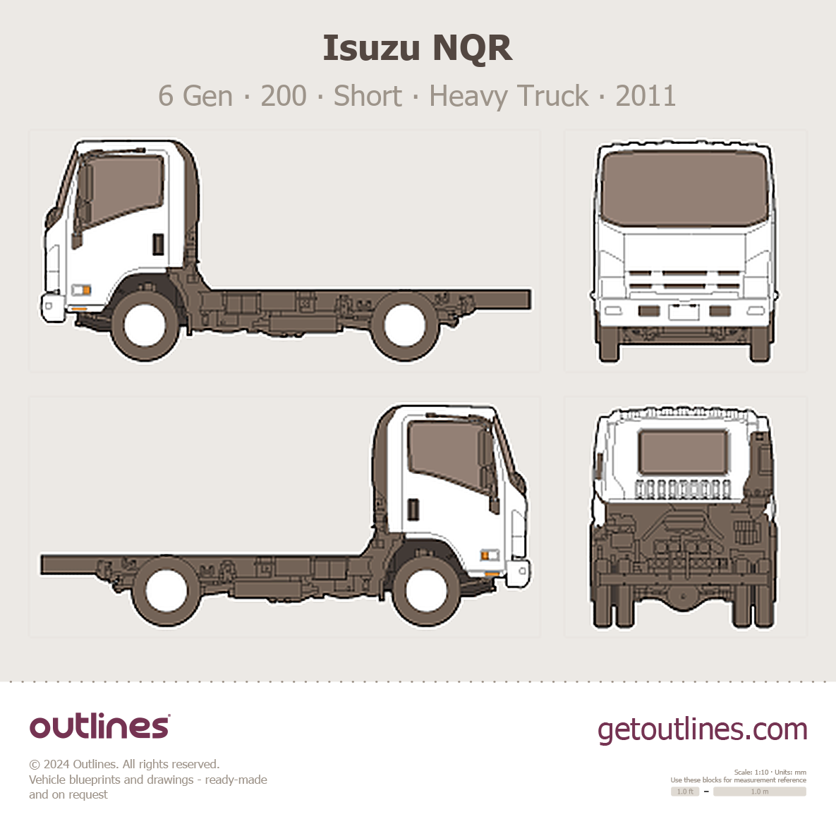 This 2011 Isuzu NQR 6 Gen ∙ 200 ∙ Short Heavy Truck blueprint helps designers, wrap studios, and 3D artists simplify their workflow and save valuable time for creative work instead of routine tasks.