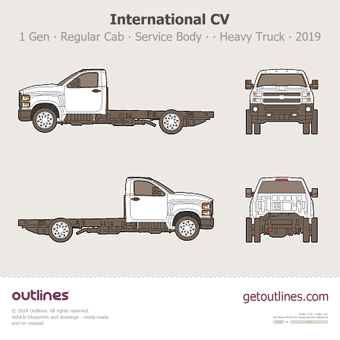 This is a blueprint of the CV, produced by carmaker International in 2019 - 2025. It features a Heavy Truck body design and is classified as a Commercial vehicle.