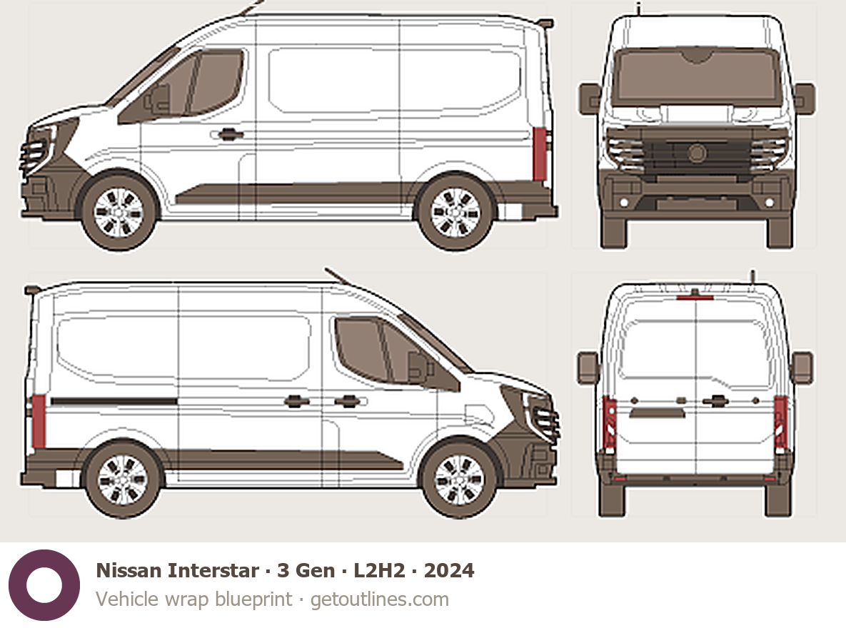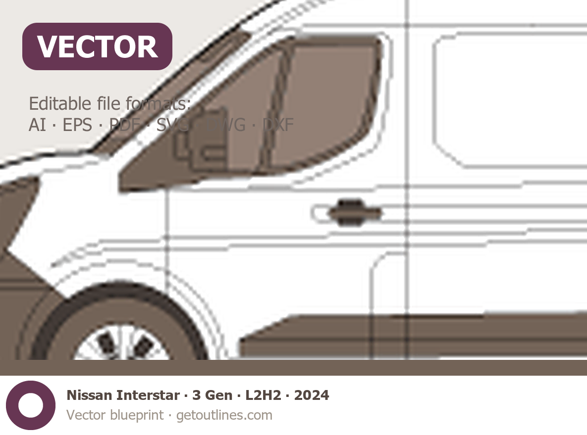 Buy this Nissan Interstar 3 Gen blueprint and line drawing in high-quality editable vector file formats. Best for 3D and car wrap design.