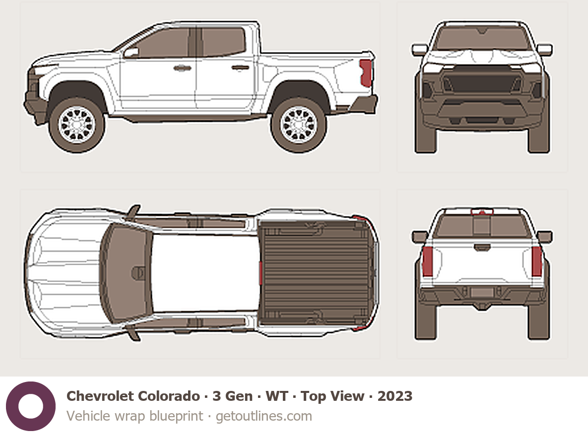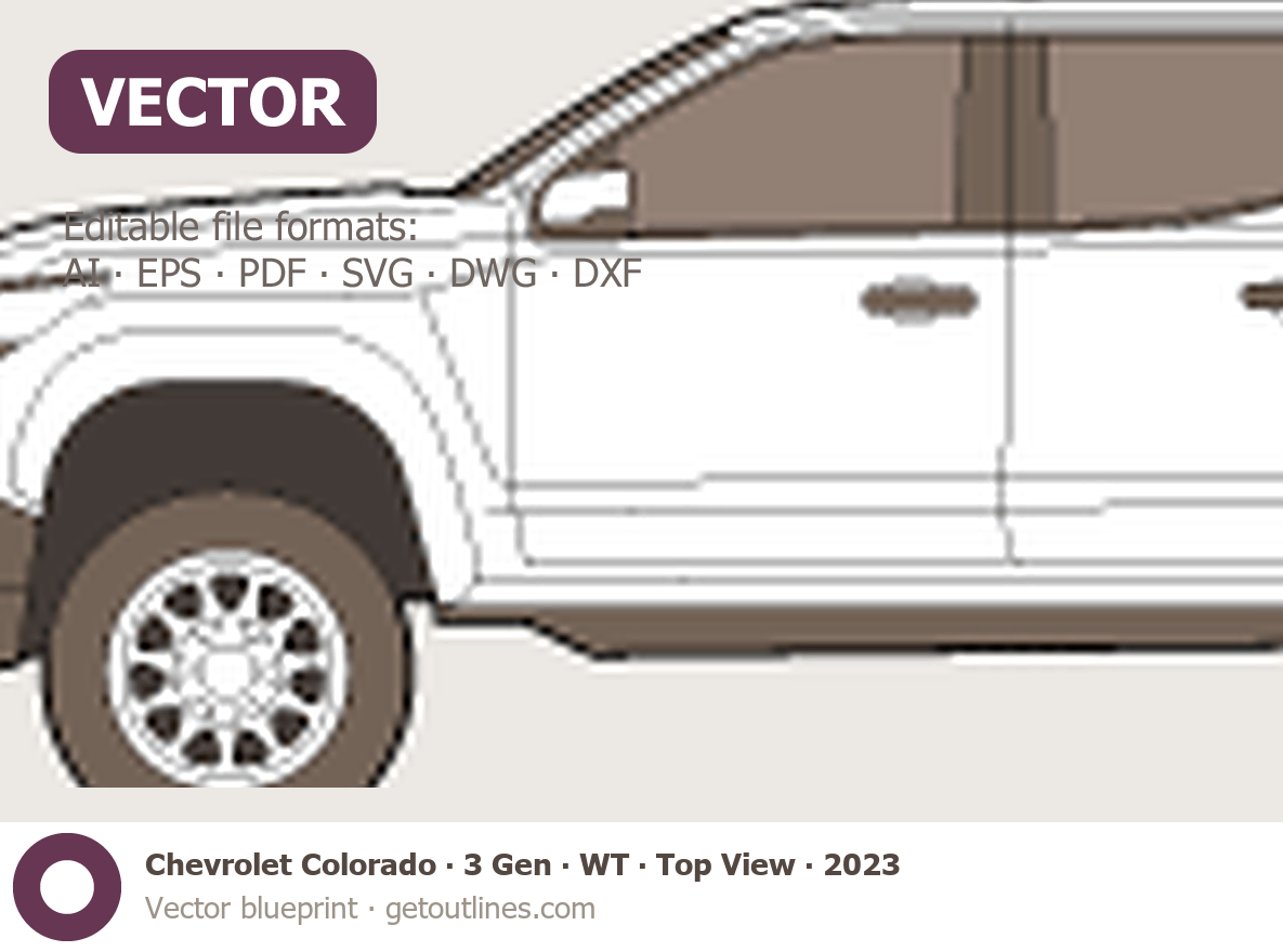 Buy this Chevrolet Colorado 3 Gen blueprint and line drawing in high-quality editable vector file formats. Best for 3D and car wrap design.