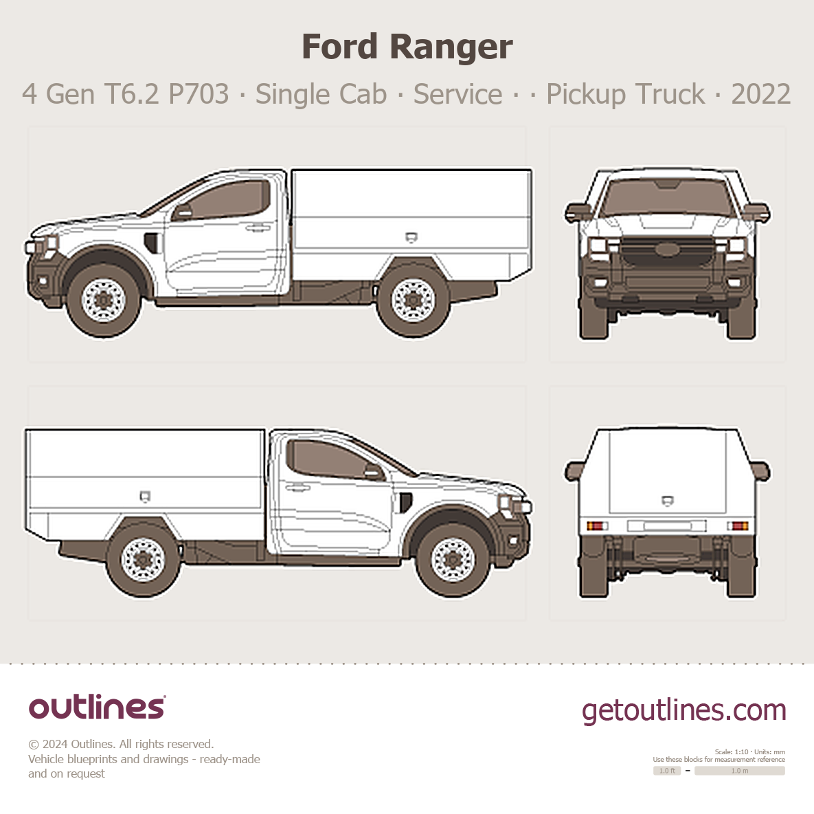 2022 Ford Ranger 4 Gen T6.2 P703 Single Cab ∙ Service ∙ Utility ∙ XL Pickup Truck blueprint