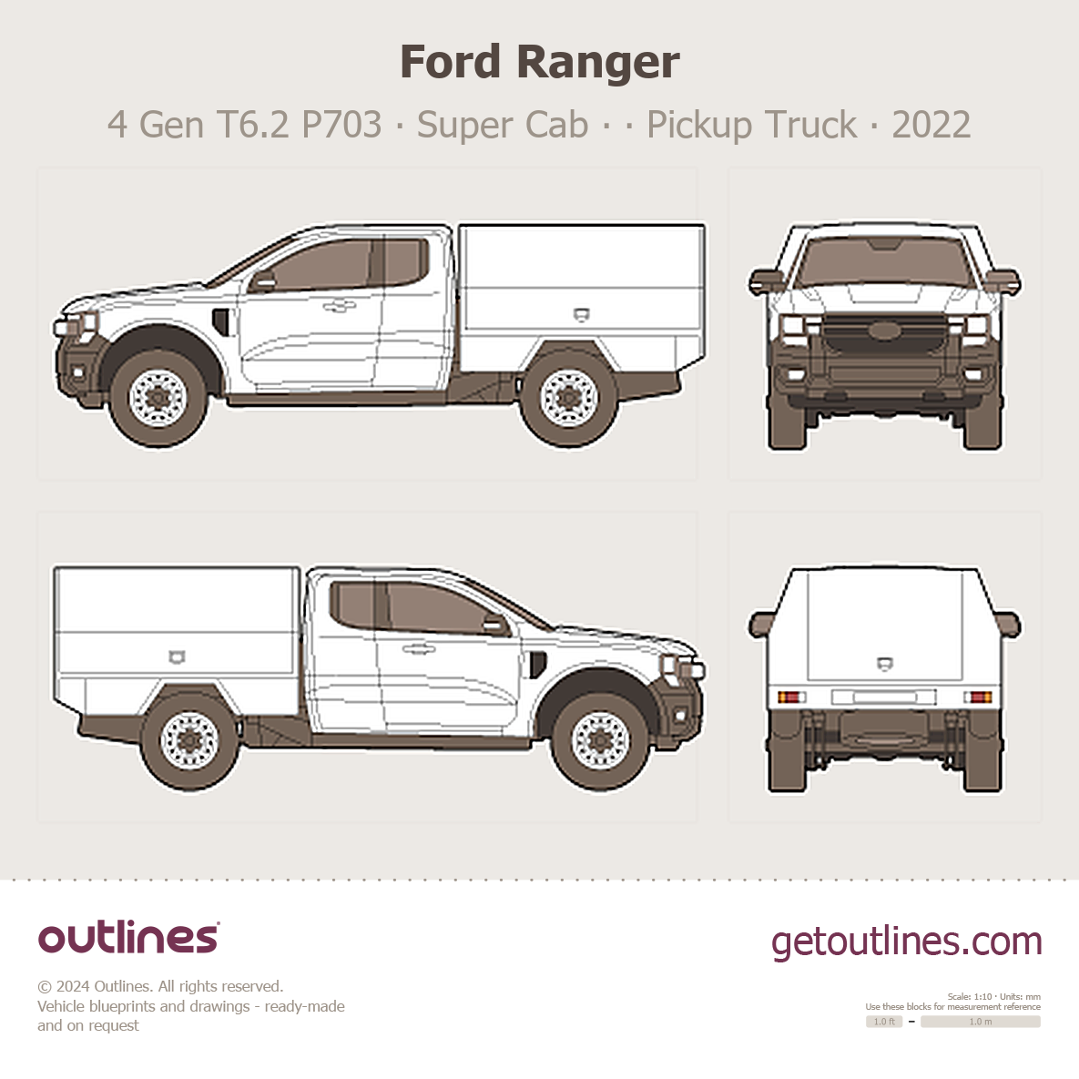 2022 Ford Ranger 4 Gen T6.2 P703 Super Cab ∙ Extended Cab ∙ Service ∙ Utility ∙ XL Pickup Truck blueprint
