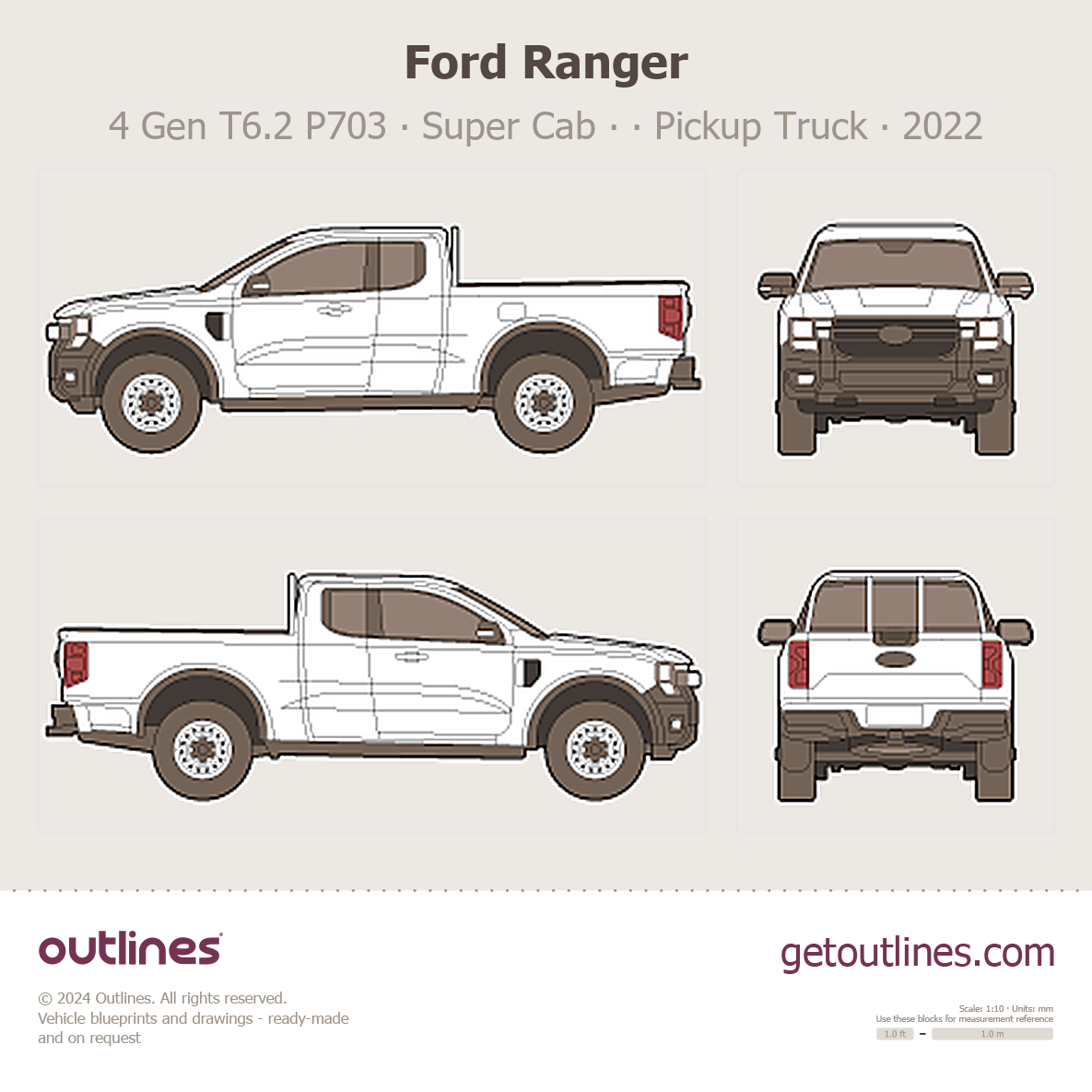2022 Ford Ranger 4 Gen T6.2 P703 Super Cab ∙ Extended Cab ∙ XL Pickup Truck blueprint