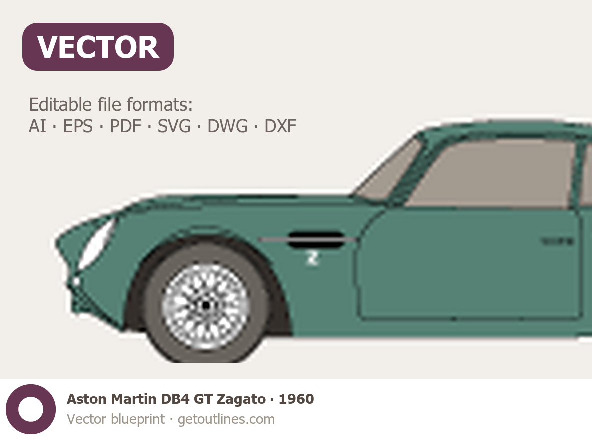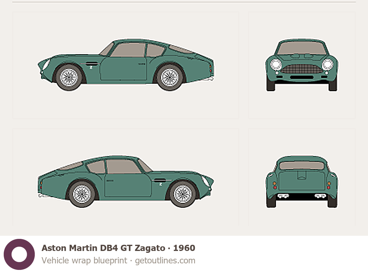 This 1960 Aston Martin DB4 GT Zagato Coupe blueprint helps designers, wrap studios, and 3D artists simplify their workflow and save valuable time for creative work instead of routine tasks.