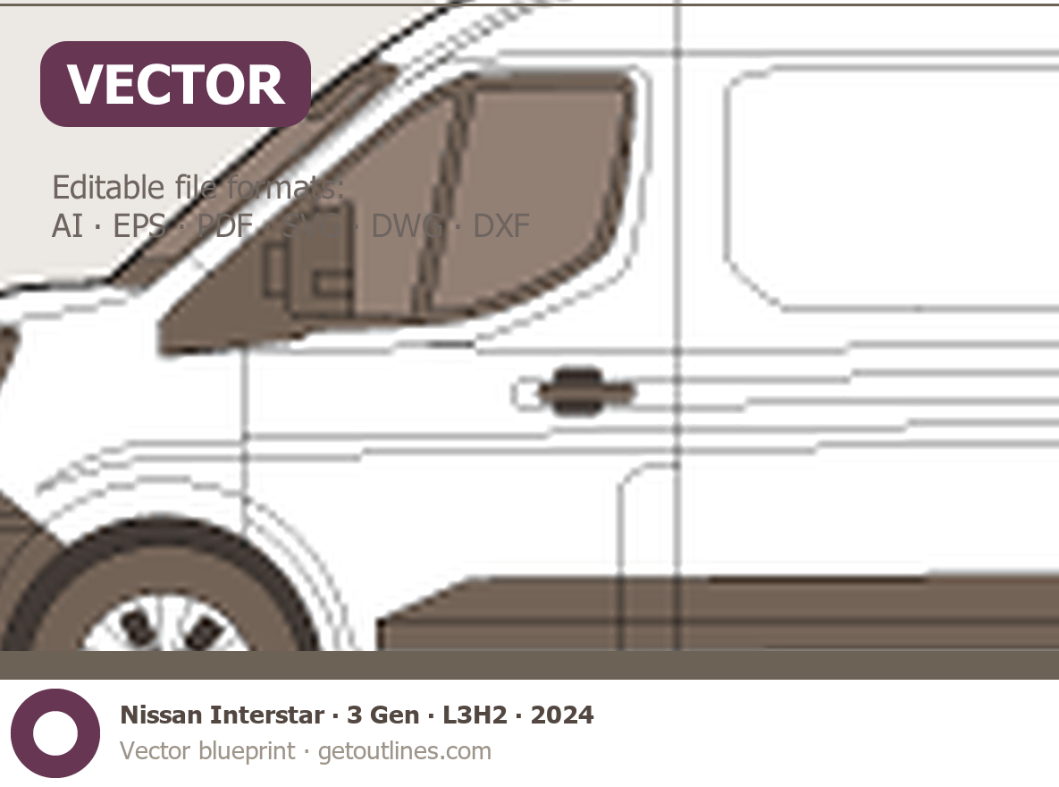 Buy this Nissan Interstar 3 Gen blueprint and line drawing in high-quality editable vector file formats. Best for 3D and car wrap design.