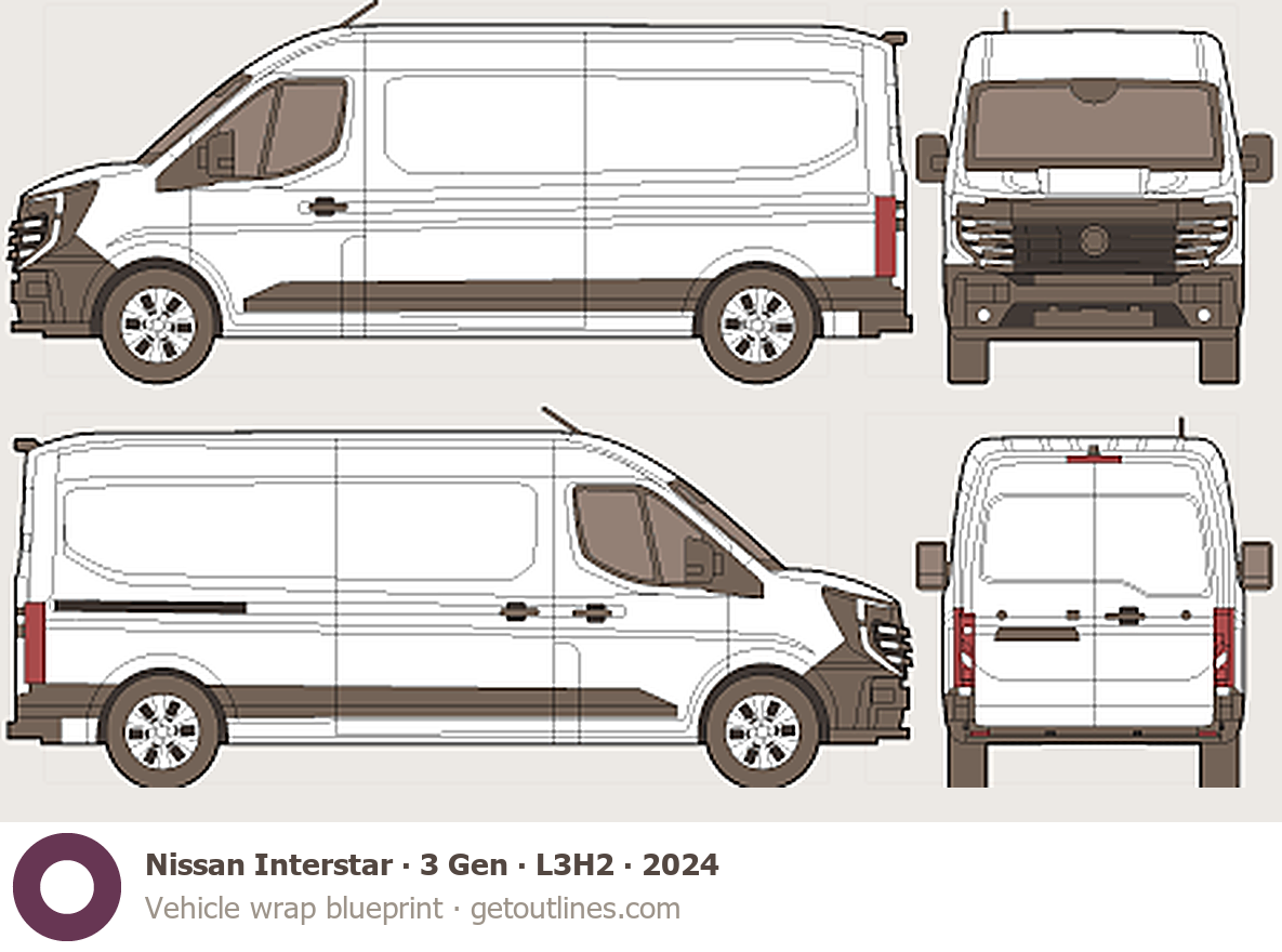 This template is suitable for Nissan Interstar models from 2024 to 2025, including 2024, and 2025 model years, and is commonly used for vehicle wrap and signage design.
