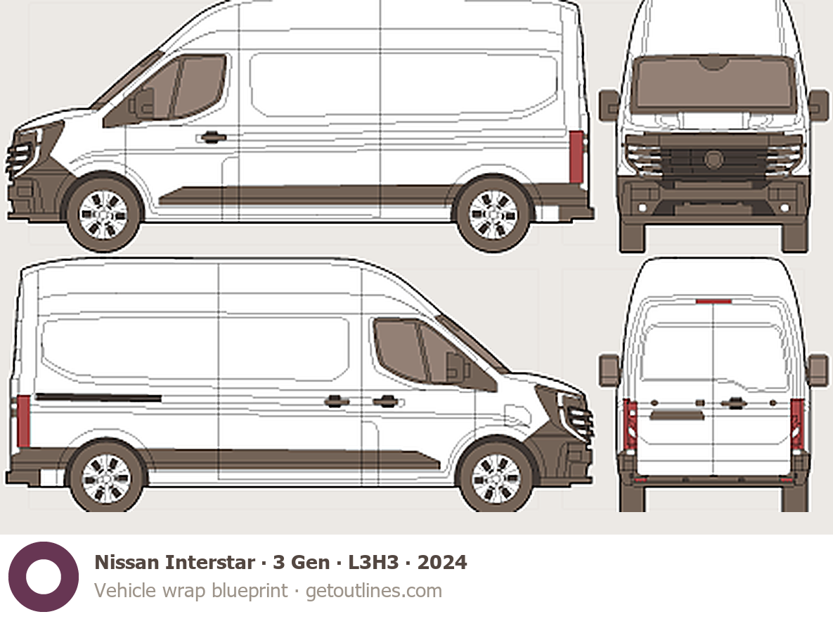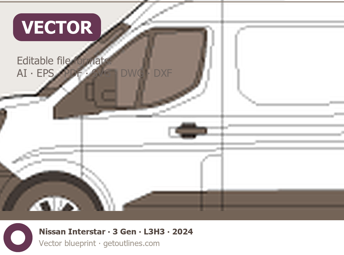 Buy this Nissan Interstar 3 Gen blueprint and line drawing in high-quality editable vector file formats. Best for 3D and car wrap design.