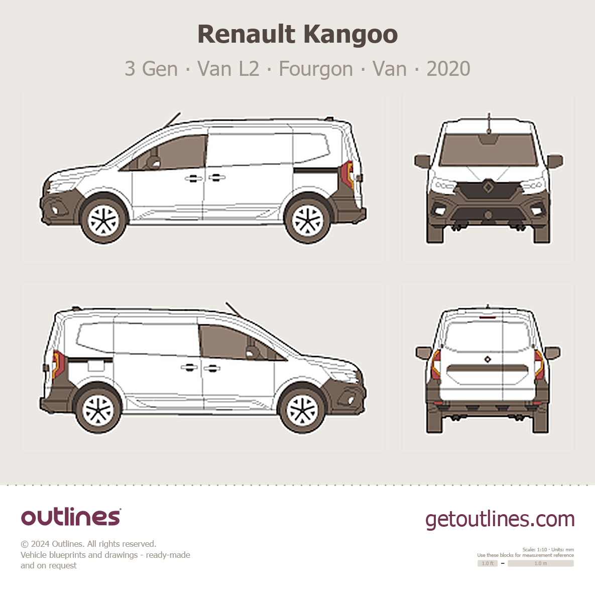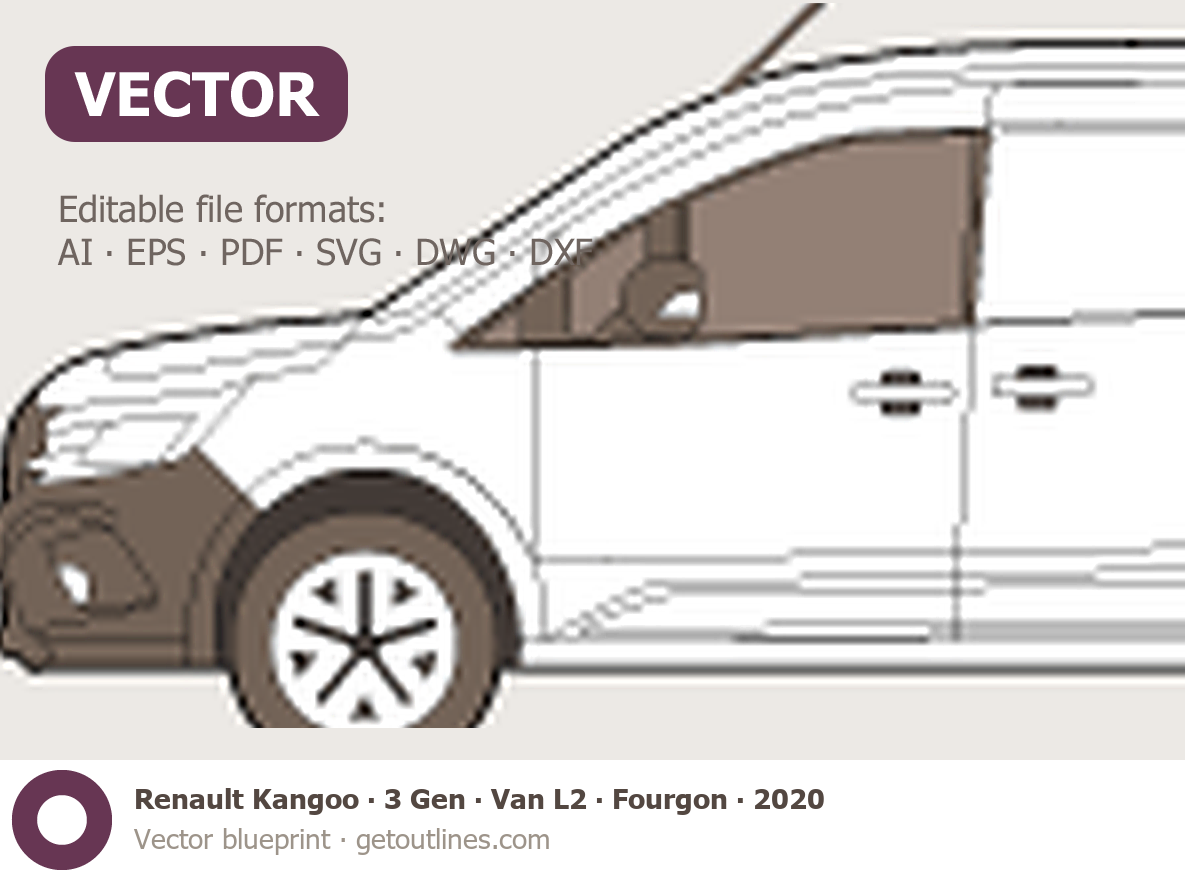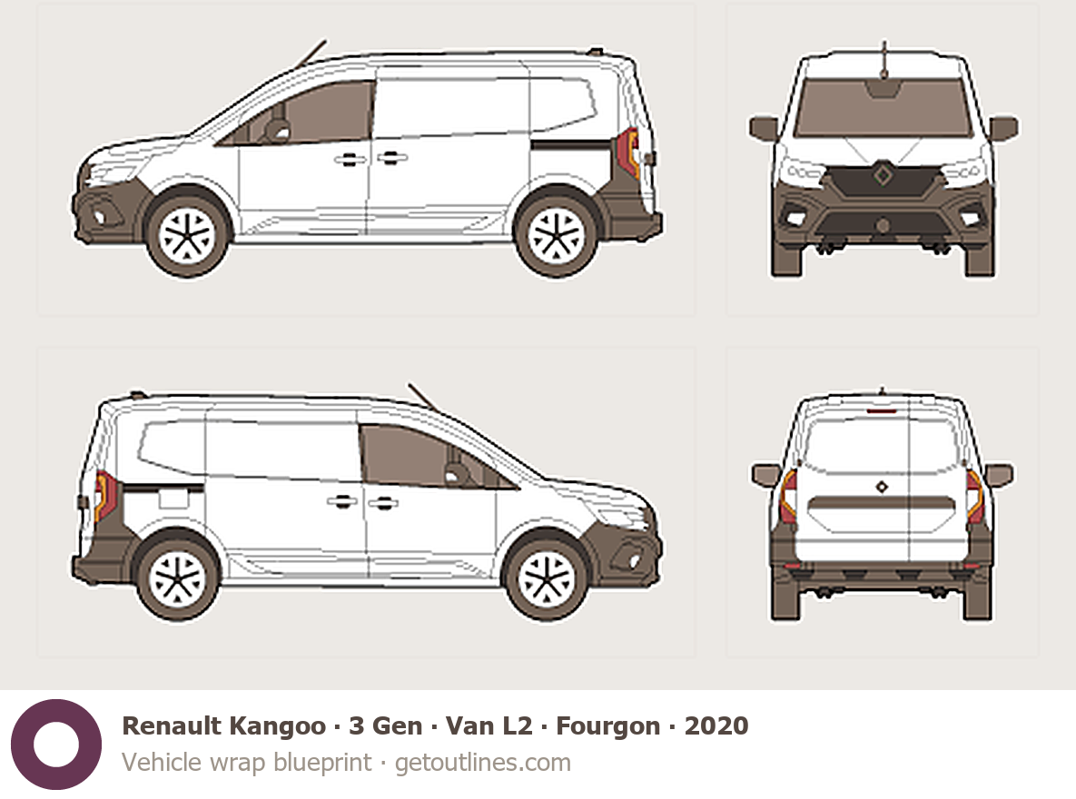 This 2020 Renault Kangoo 3 Gen Van L2 ∙ Fourgon Van blueprint helps designers, wrap studios, and 3D artists simplify their workflow and save valuable time for creative work instead of routine tasks.
