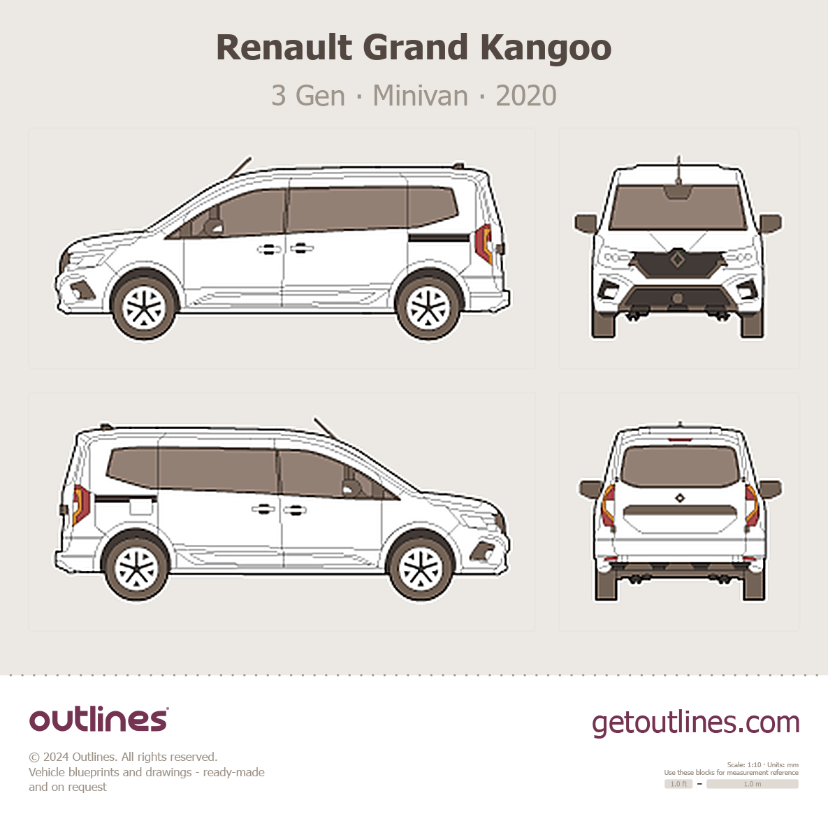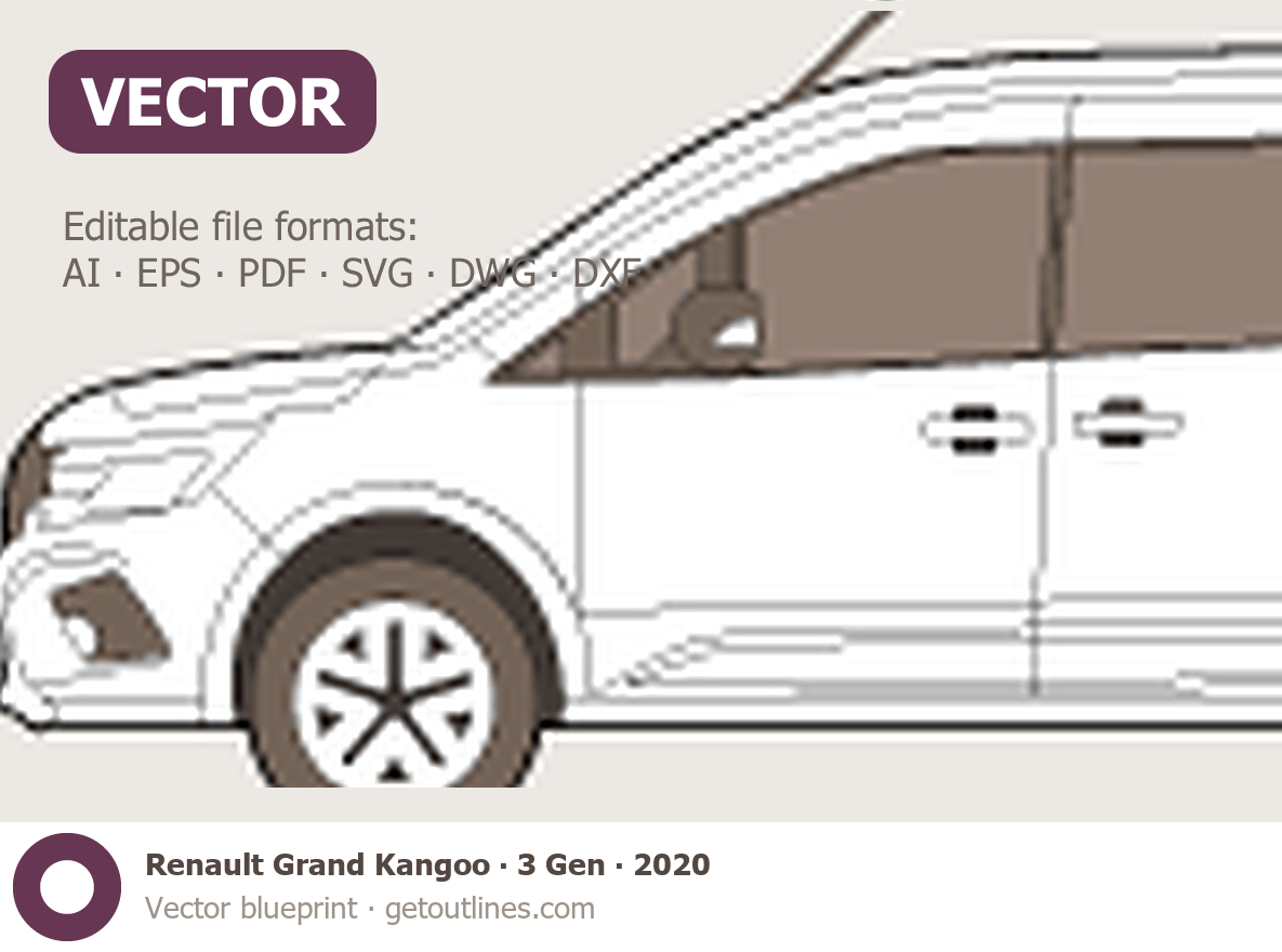 This 2020 Renault Grand Kangoo 3 Gen Minivan blueprint helps designers, wrap studios, and 3D artists simplify their workflow and save valuable time for creative work instead of routine tasks.
