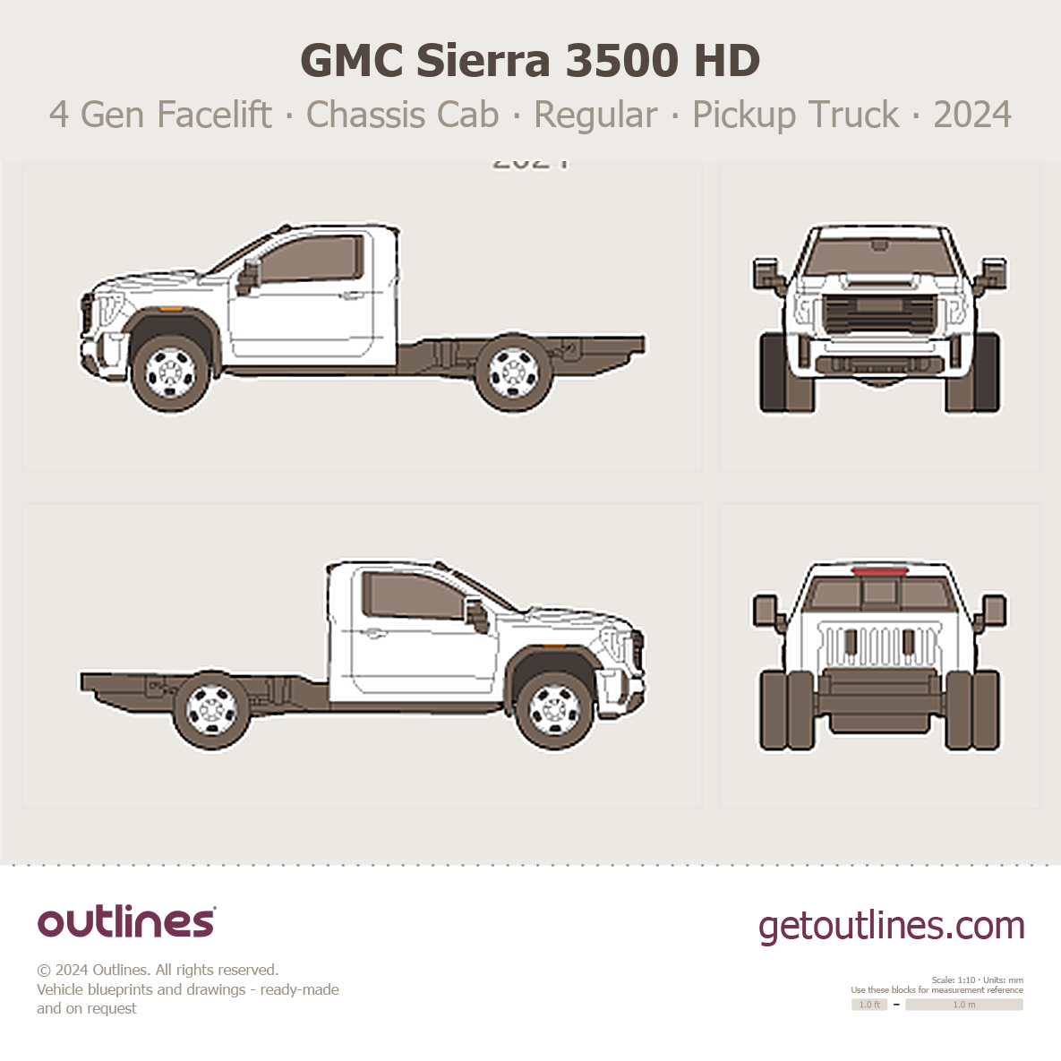 2024 GMC Sierra 3500 HD 4 Gen Facelift Chassis Cab ∙ Regular Cab ∙ CA 60" ∙ SWB Pickup Truck blueprint