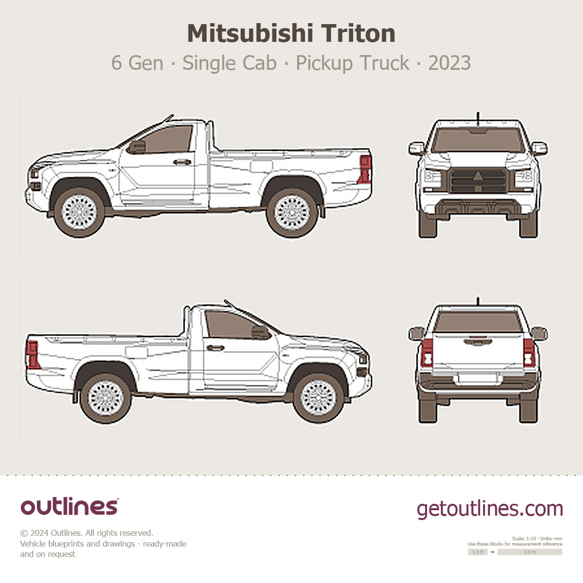 2023 Mitsubishi Triton 6 Gen Single Cab Pickup Truck blueprint