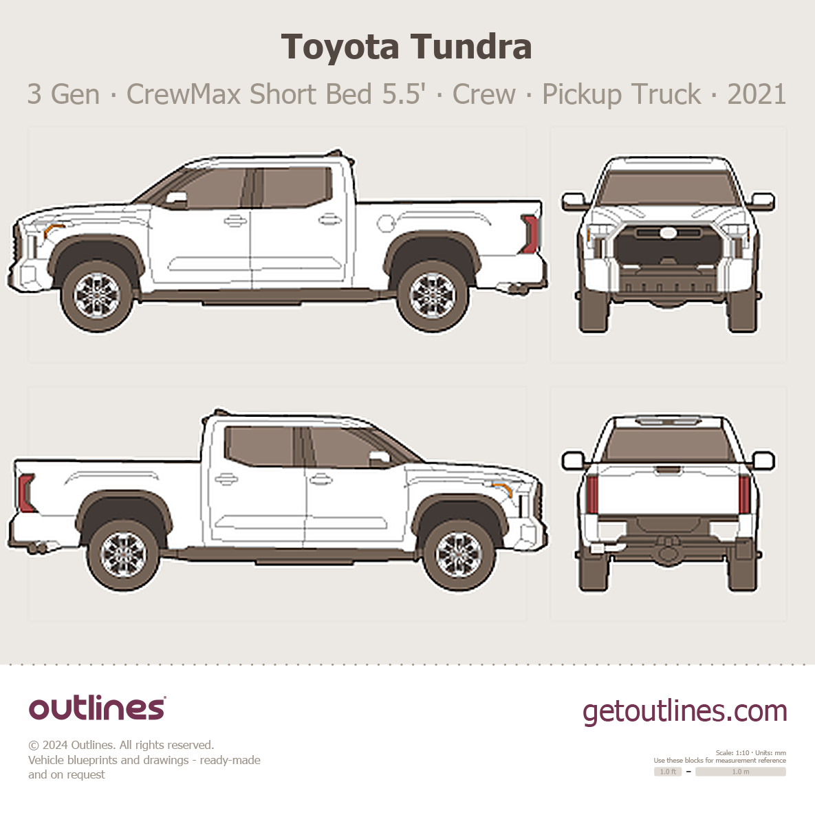 2021 Toyota Tundra 3 Gen CrewMax Short Bed 5.5' ∙ Crew Cab ∙ SR5 Pickup Truck blueprint