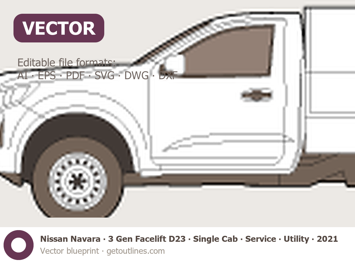 This 2021 Nissan Navara 3 Gen Facelift D23 Single Cab ∙ Service ∙ Utility Pickup Truck blueprint helps designers, wrap studios, and 3D artists simplify their workflow and save valuable time for creative work instead of routine tasks.