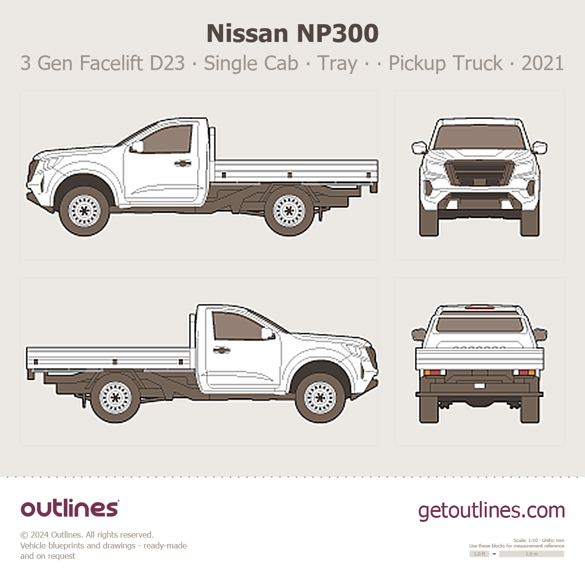 2021 Nissan NP300 3 Gen Facelift D23 Single Cab ∙ Tray ∙ Tipper Pickup Truck blueprint