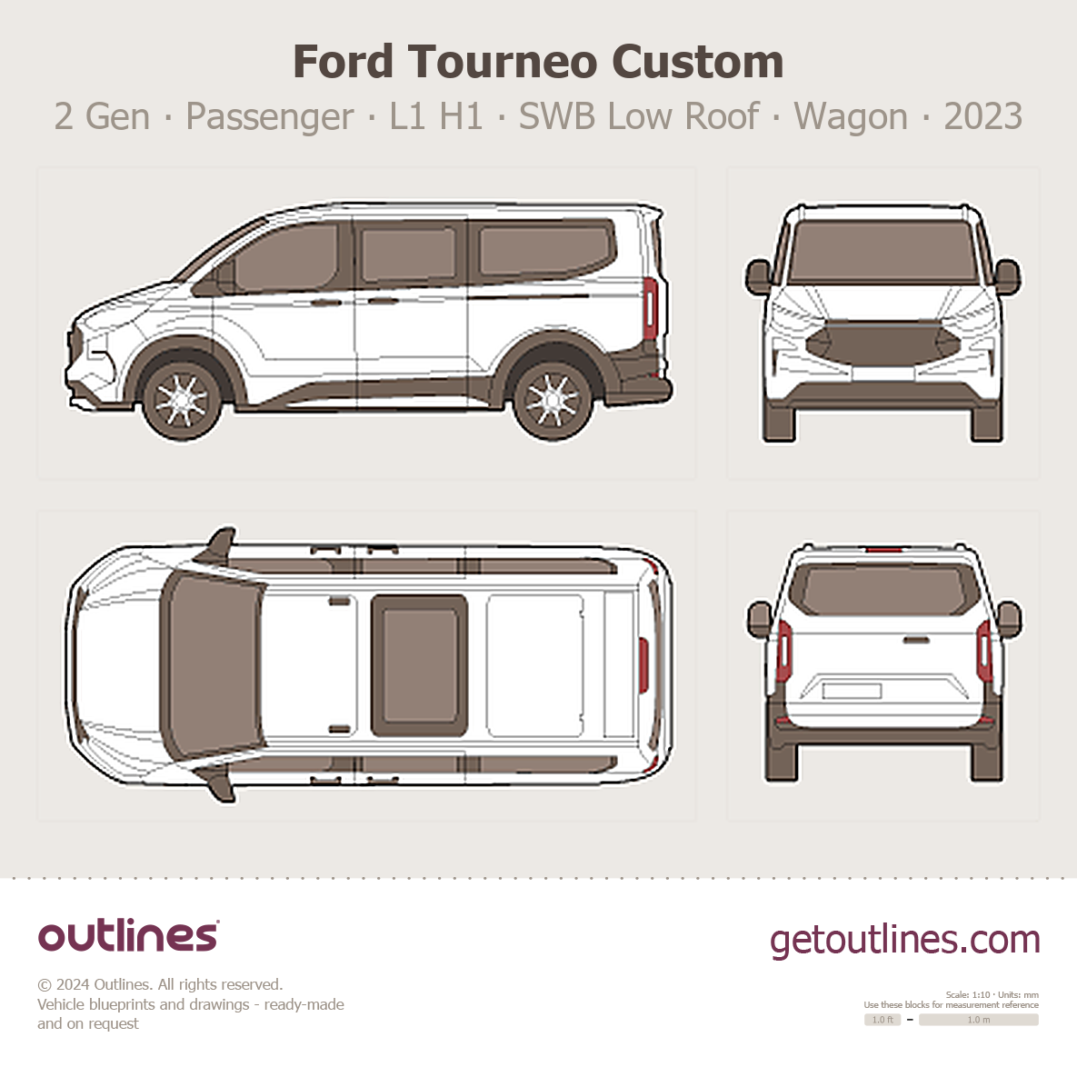 2023 Ford Tourneo Custom 2 Gen Passenger ∙ L1 H1 ∙ SWB Low Roof Wagon blueprint