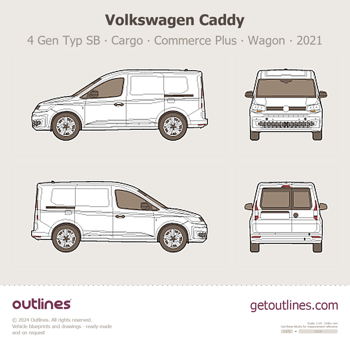 This 2021 Volkswagen Caddy 4 Gen Typ SB Cargo ∙ Commerce Plus Wagon blueprint helps designers, wrap studios, and 3D artists simplify their workflow and save valuable time for creative work instead of routine tasks.