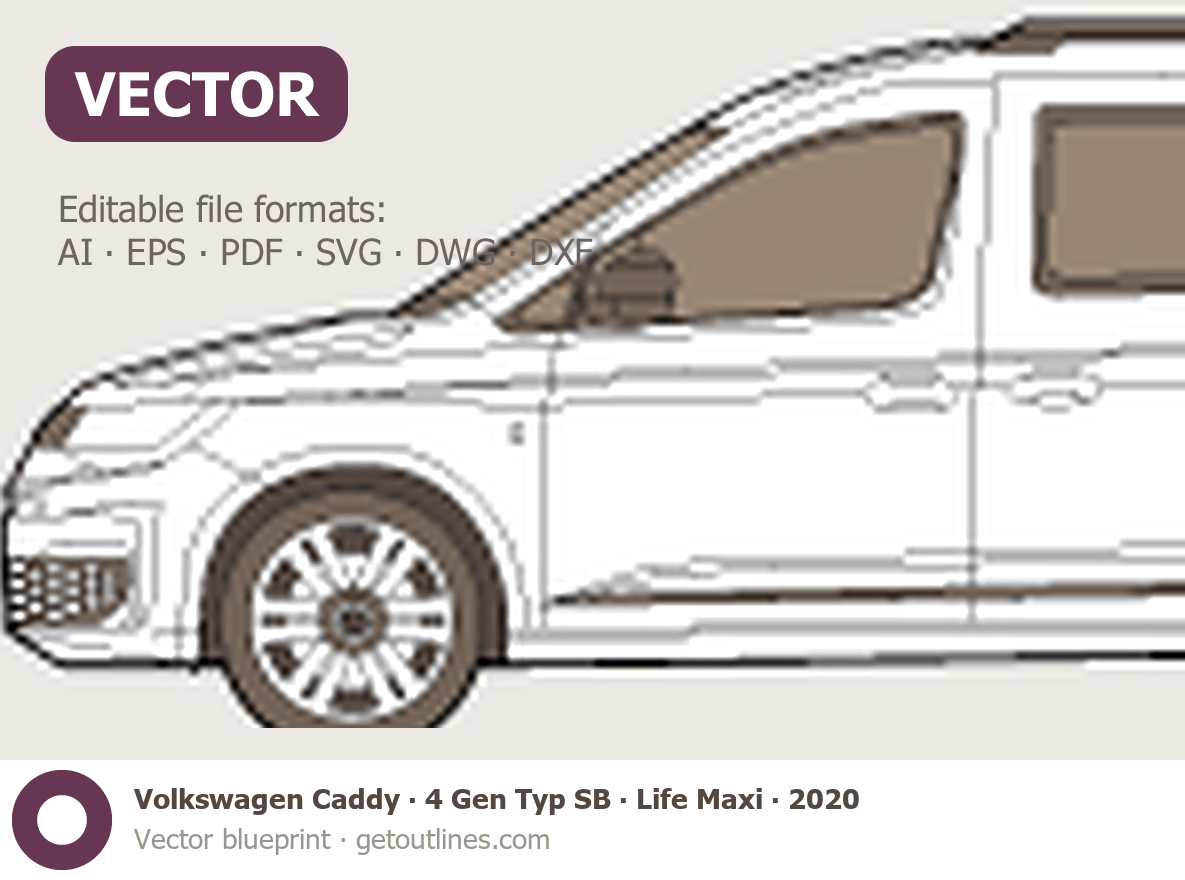 This 2020 Volkswagen Caddy 4 Gen Typ SB Life Maxi Minivan blueprint helps designers, wrap studios, and 3D artists simplify their workflow and save valuable time for creative work instead of routine tasks.