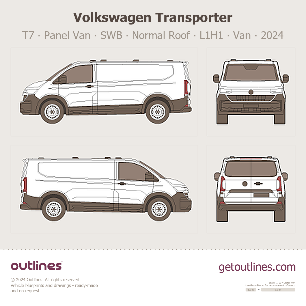 2024 Volkswagen Transporter T7 Panel Van ∙ SWB ∙ Normal Roof ∙ L1H1 Van blueprint
