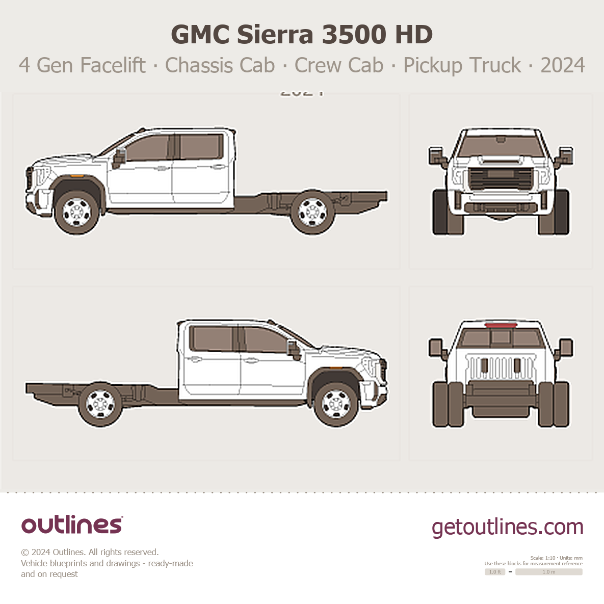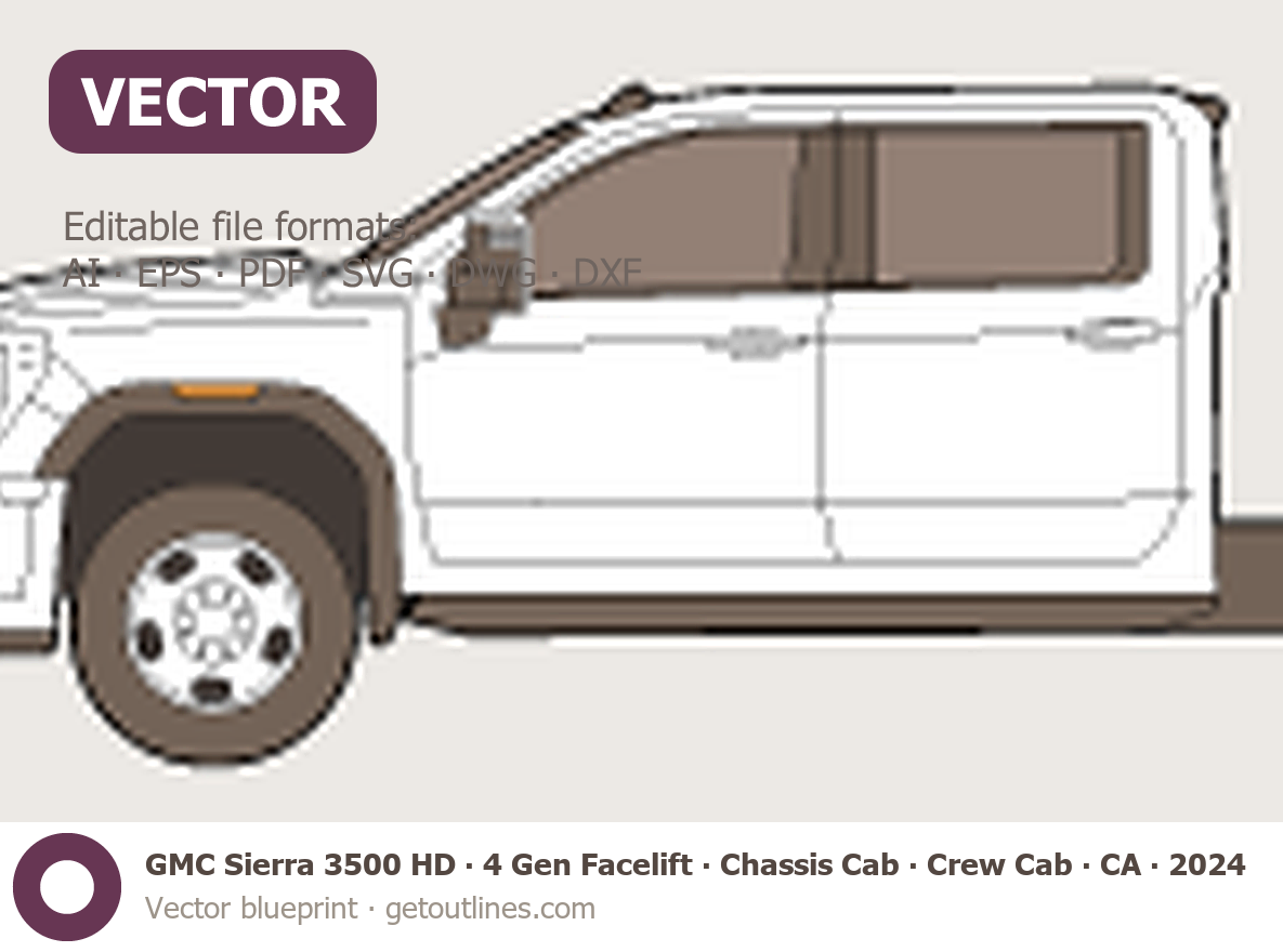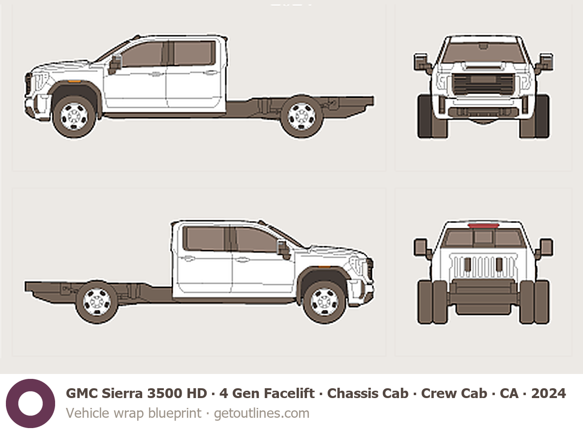 Buy this GMC Sierra 3500 HD 4 Gen Facelift blueprint and line drawing in high-quality editable vector file formats. Best for 3D and car wrap design.