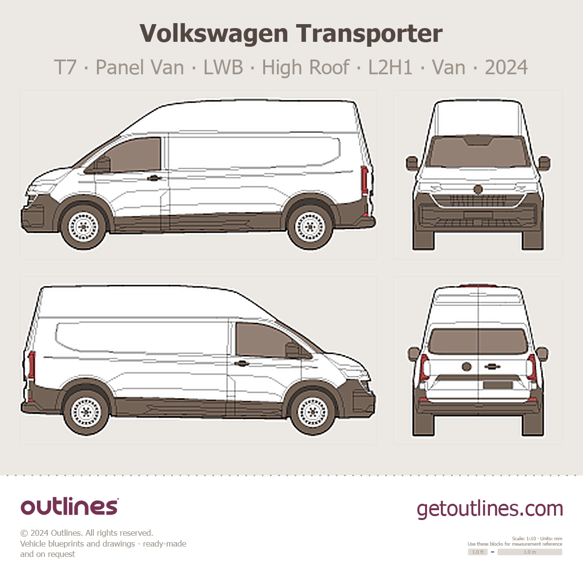 2024 Volkswagen Transporter T7 Panel Van ∙ LWB ∙ High Roof ∙ L2H1 Van blueprint