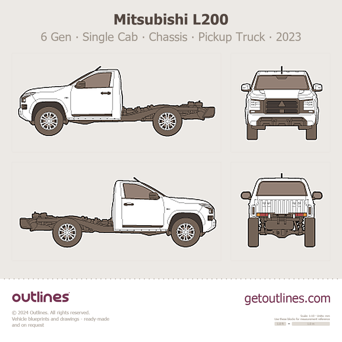 2023 Mitsubishi L200 6 Gen Single Cab ∙ Chassis Pickup Truck blueprint