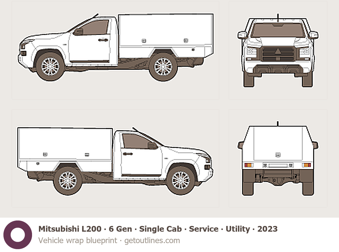 This 2023 Mitsubishi L200 6 Gen Single Cab ∙ Service ∙ Utility Pickup Truck blueprint helps designers, wrap studios, and 3D artists simplify their workflow and save valuable time for creative work instead of routine tasks.