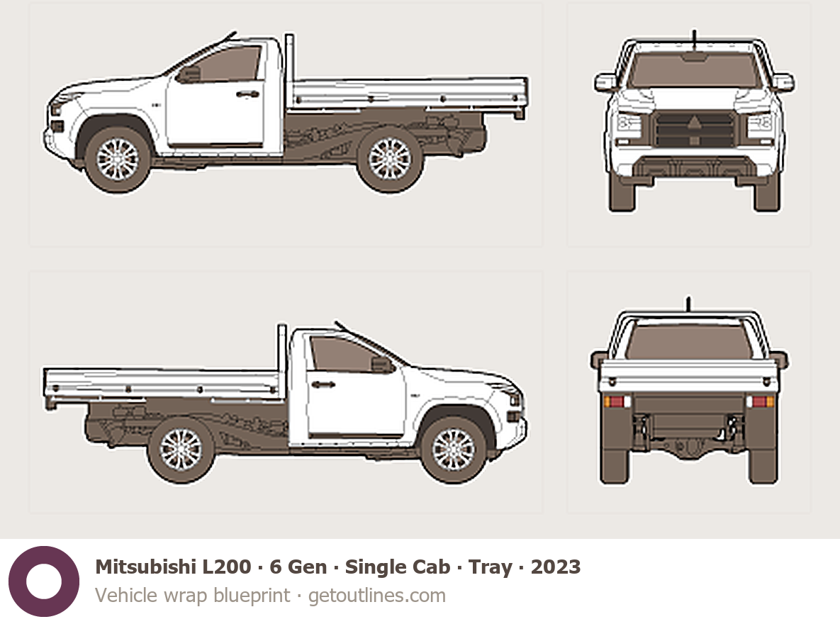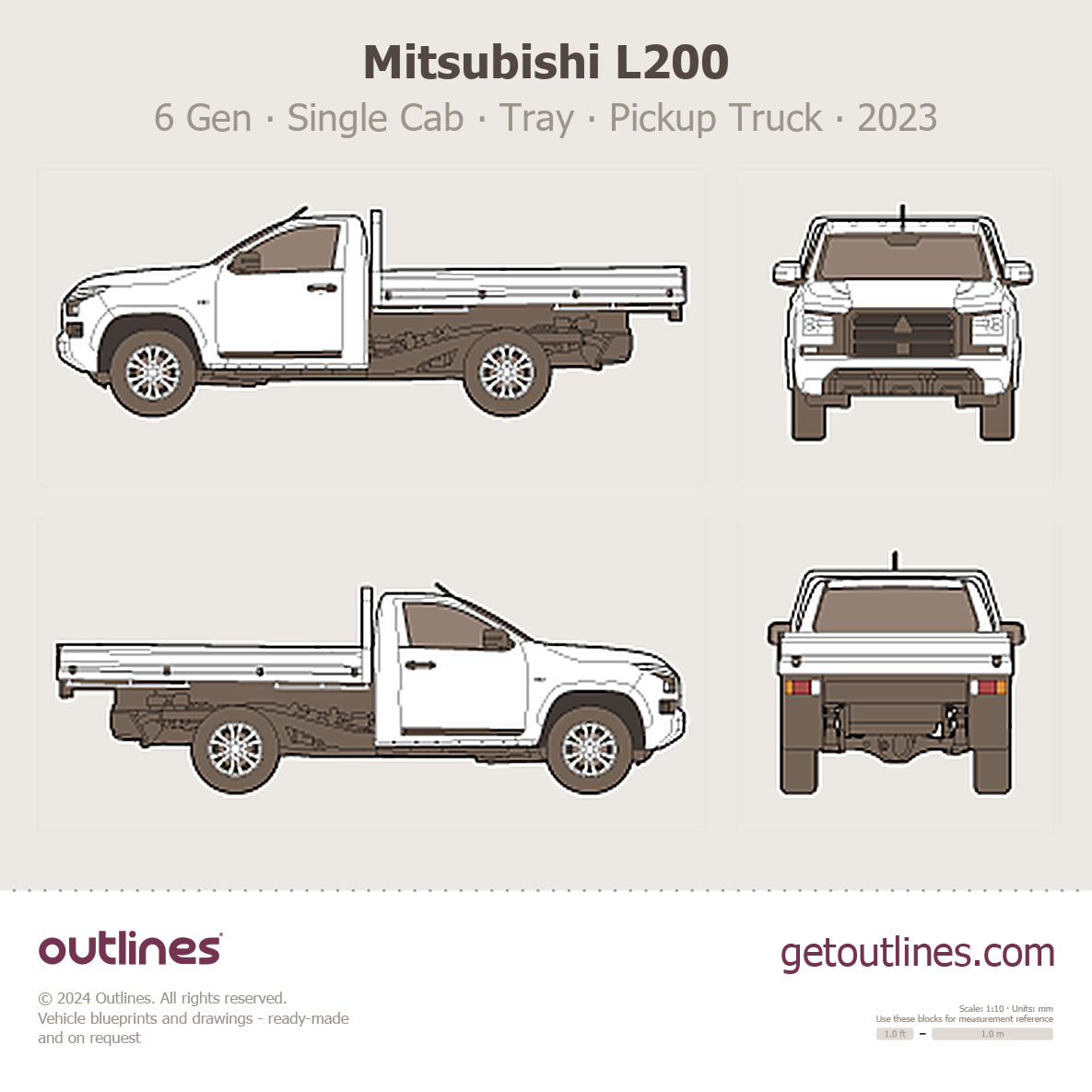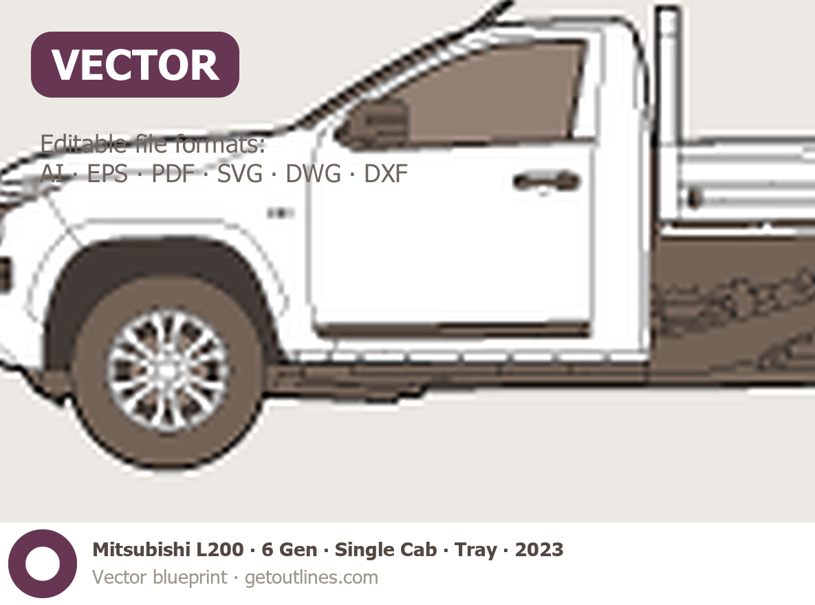 Buy this Mitsubishi L200 6 Gen blueprint and line drawing in high-quality editable vector file formats. Best for 3D and car wrap design.