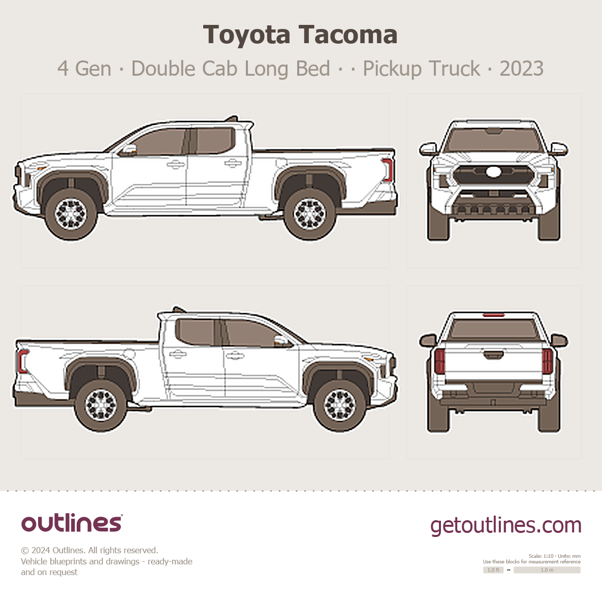 2023 Toyota Tacoma 4 Gen Double Cab Standard Bed ∙ Extended Cab ∙ TRD Off-Road Pickup Truck blueprint