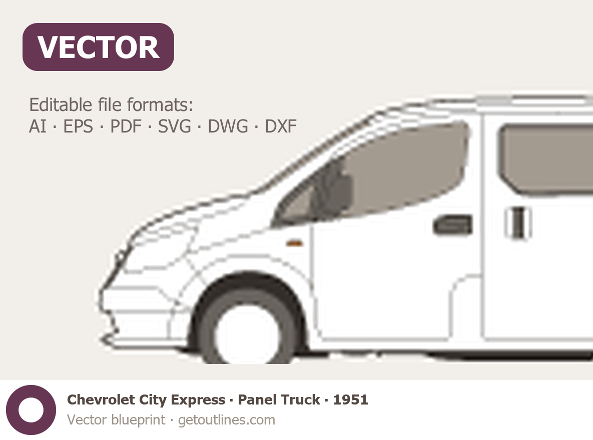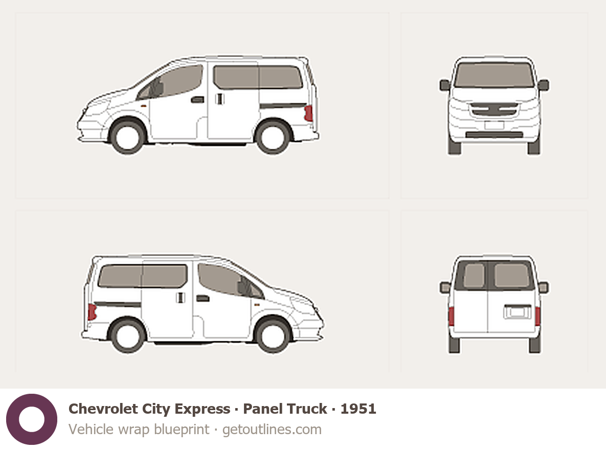 Buy this Chevrolet City Express blueprint and line drawing in high-quality editable vector file formats. Best for 3D and car wrap design.