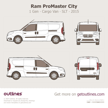 Buy this Ram ProMaster City 1 Gen blueprint and line drawing in high-quality editable vector file formats. Best for 3D and car wrap design.