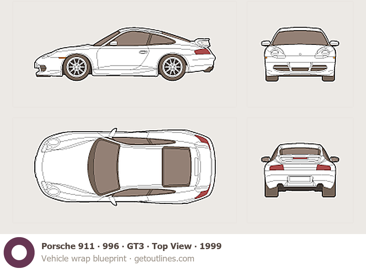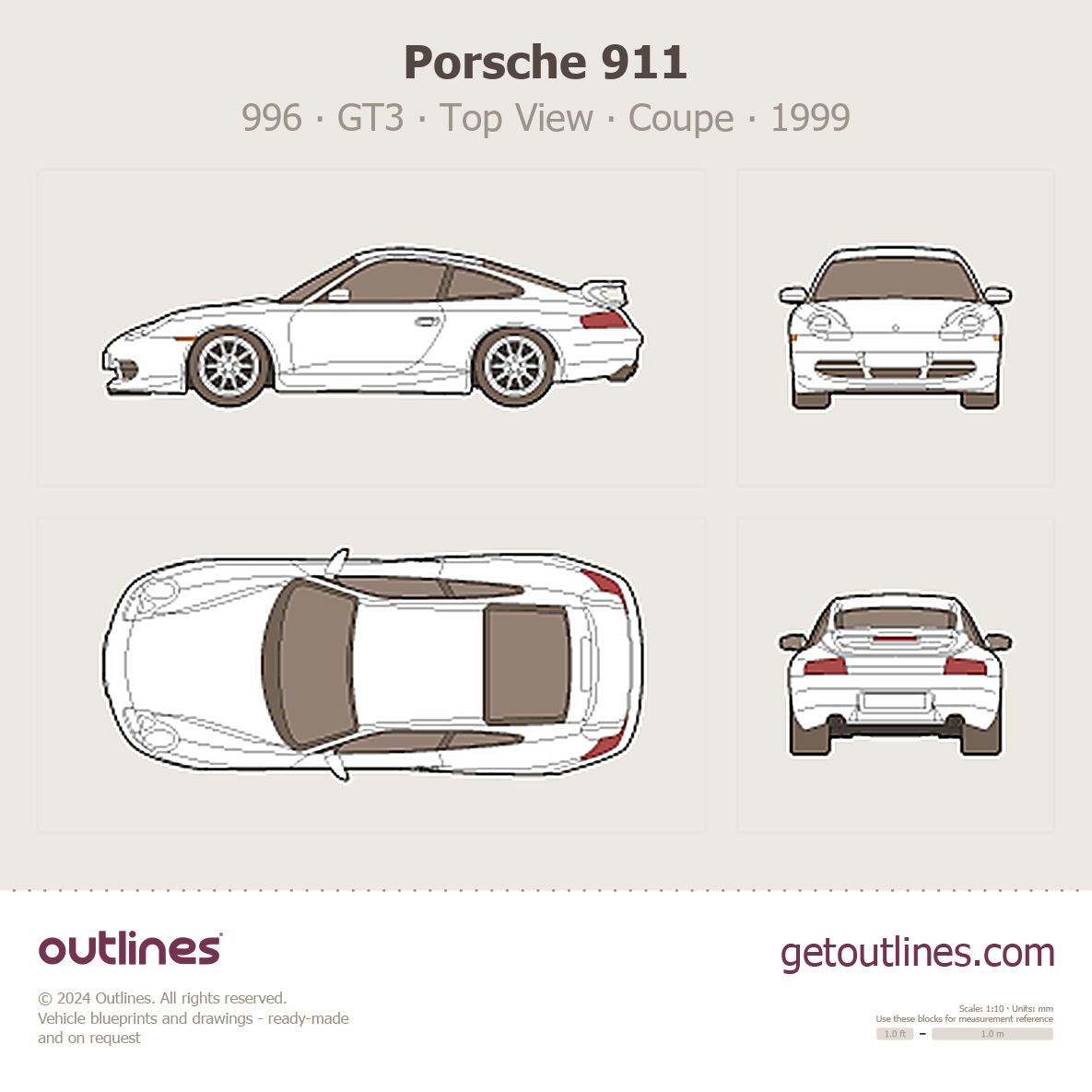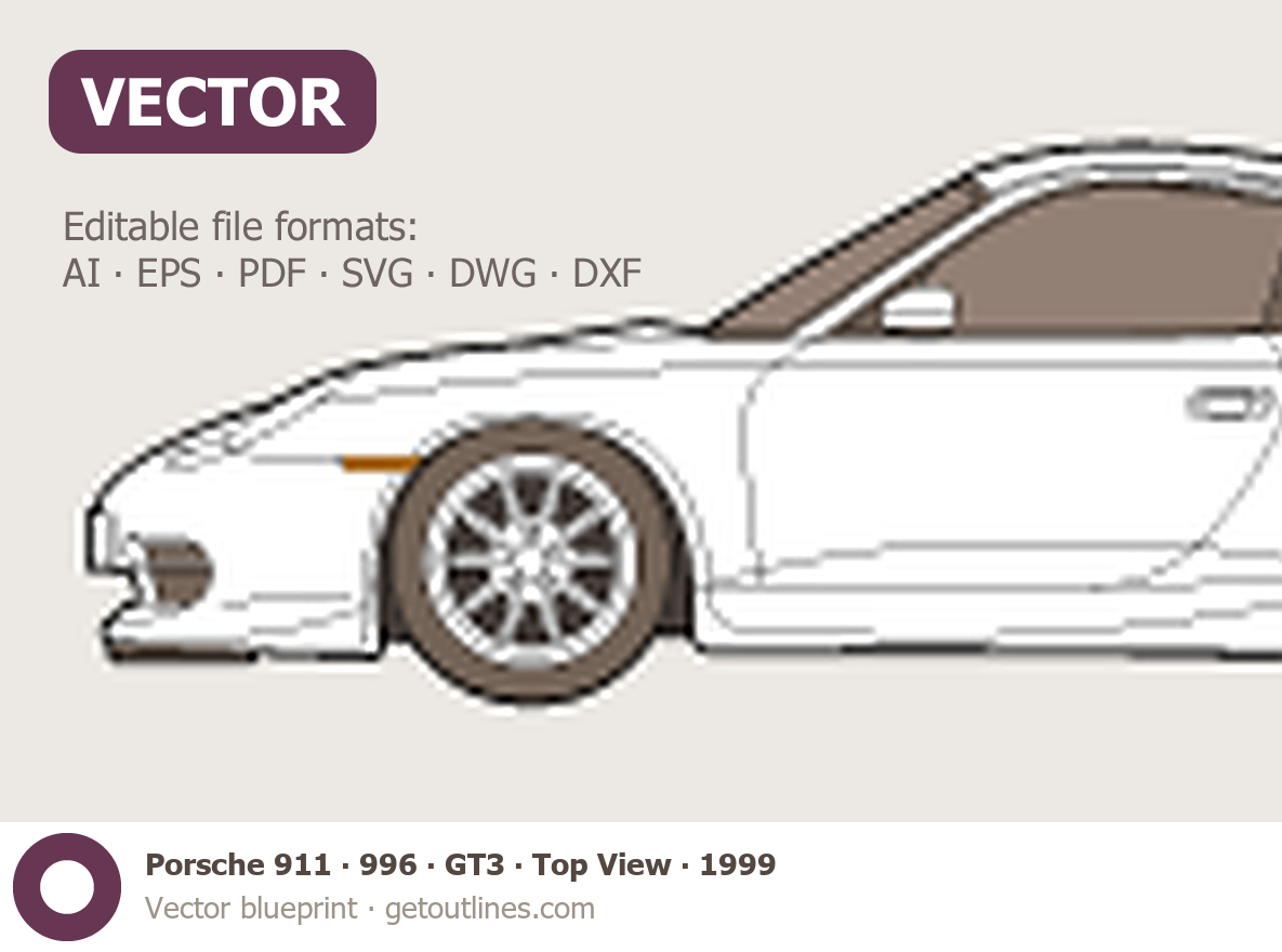 Buy this Porsche 911 996 blueprint and line drawing in high-quality editable vector file formats. Best for 3D and car wrap design.