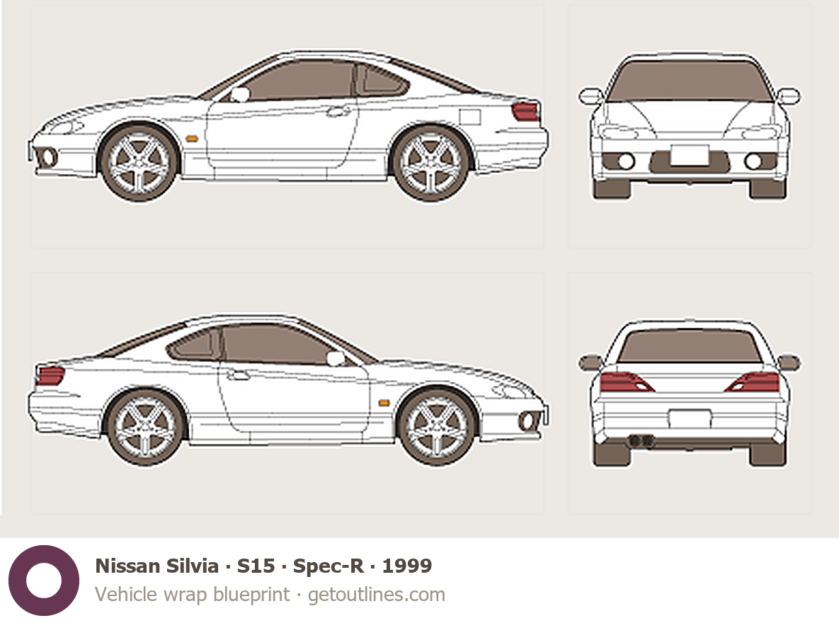 This 1999 Nissan Silvia S15 Spec-R Coupe blueprint helps designers, wrap studios, and 3D artists simplify their workflow and save valuable time for creative work instead of routine tasks.