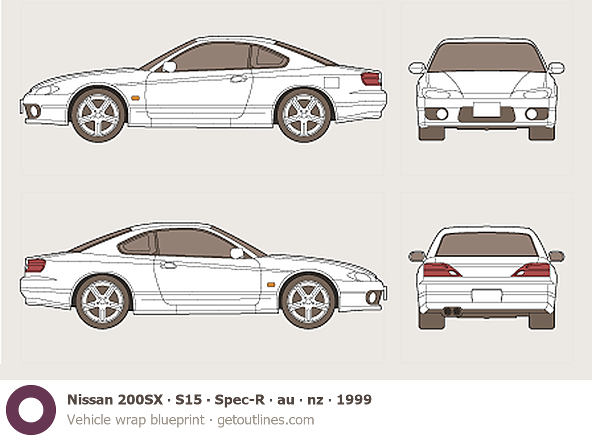 This 1999 Nissan 200SX S15 Spec-R ∙ au ∙ nz Coupe blueprint helps designers, wrap studios, and 3D artists simplify their workflow and save valuable time for creative work instead of routine tasks.