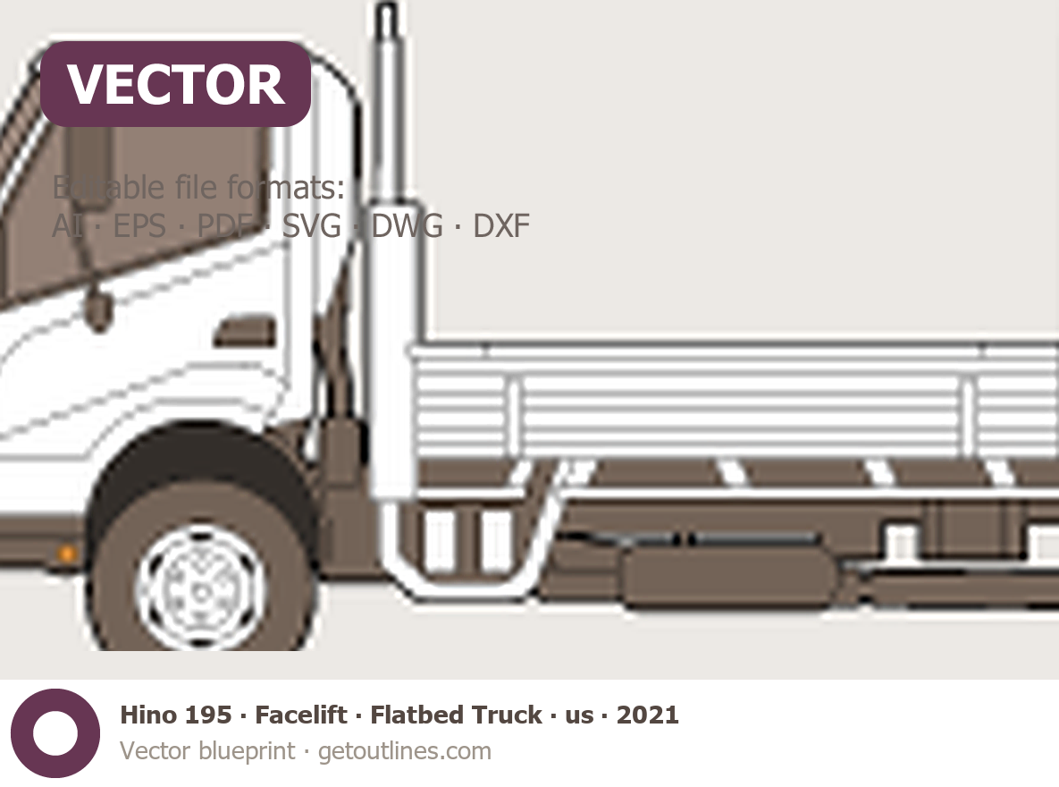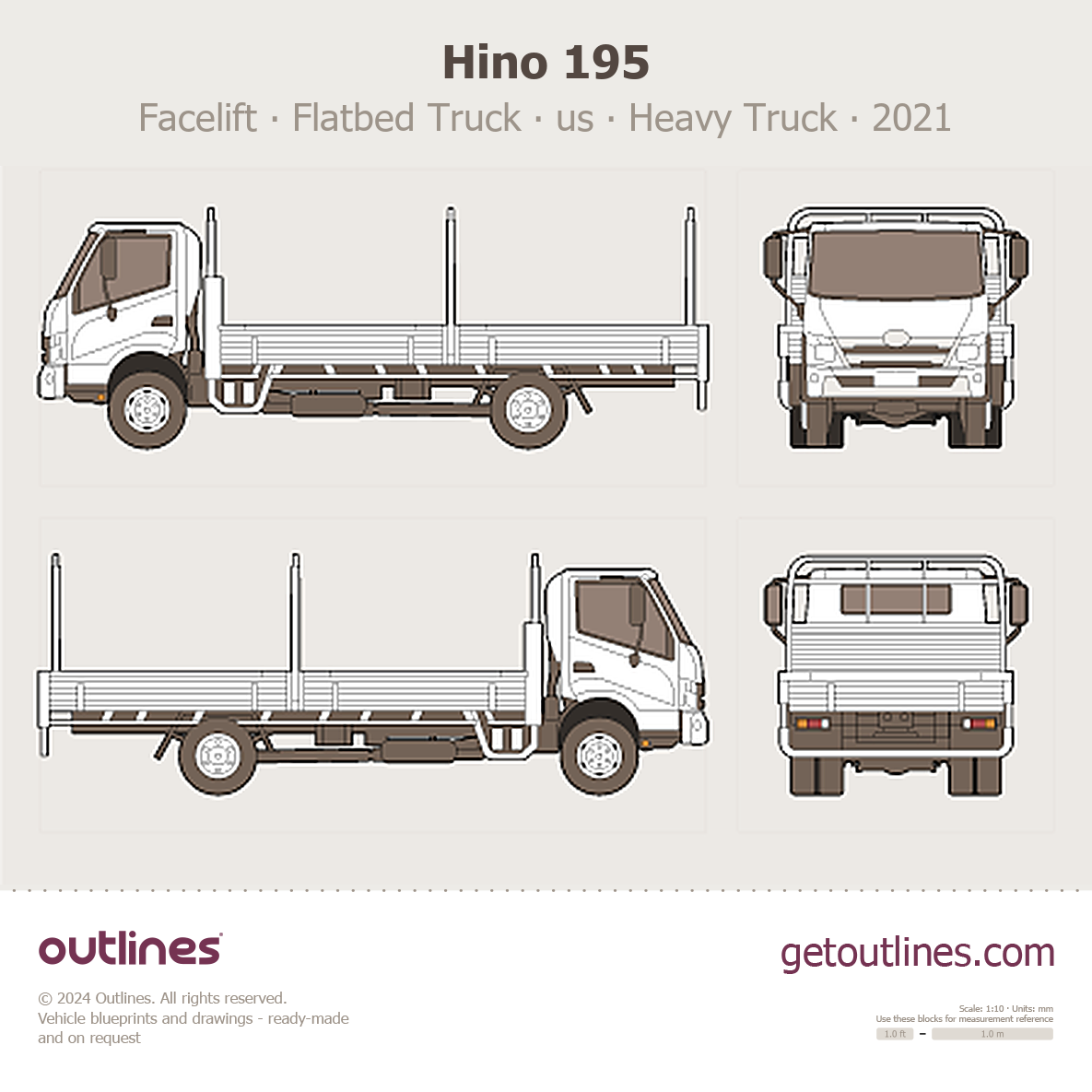 Buy this Hino 195 Facelift blueprint and line drawing in high-quality editable vector file formats. Best for 3D and car wrap design.