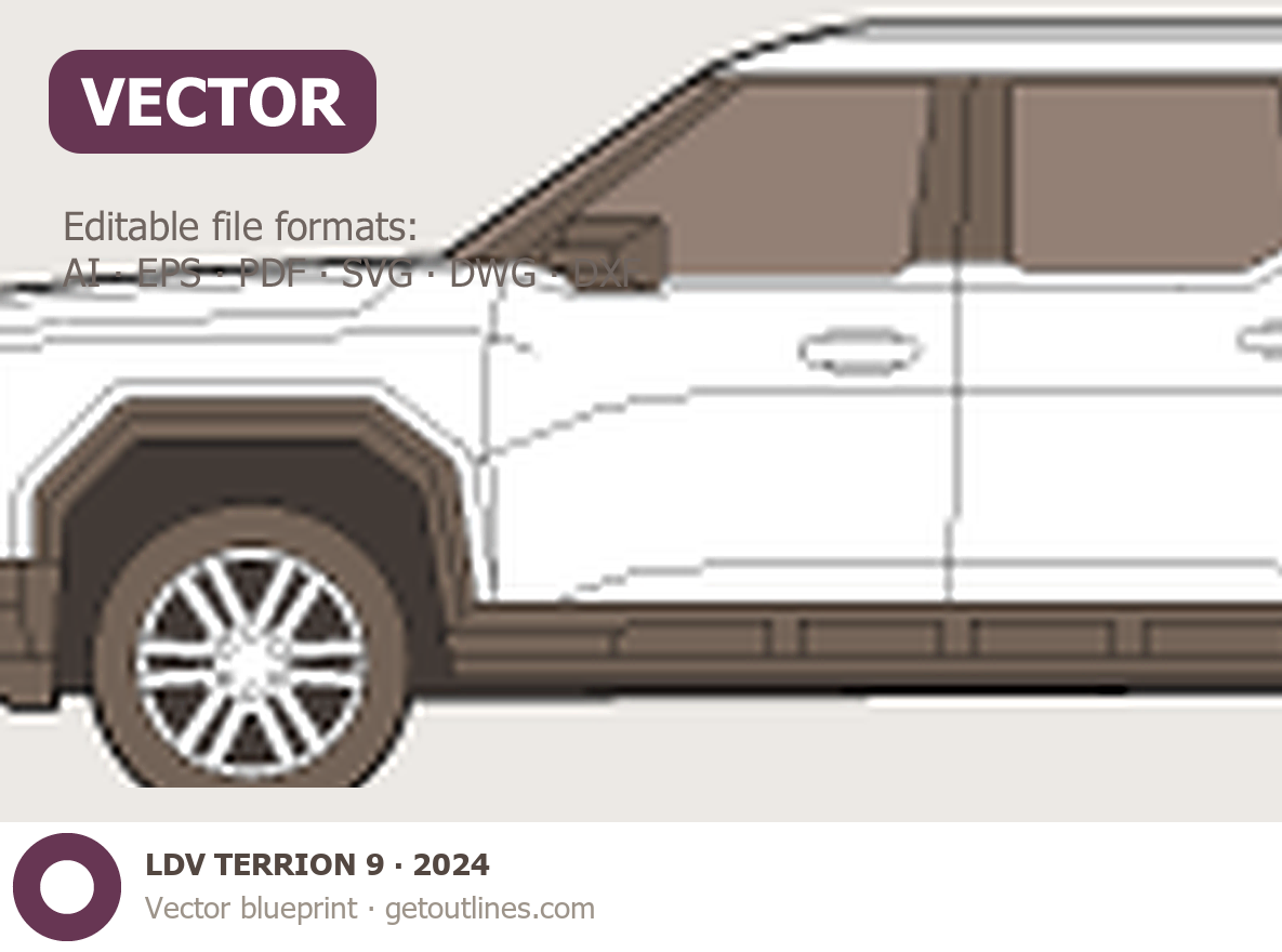 Buy this LDV TERRION 9 blueprint and line drawing in high-quality editable vector file formats. Best for 3D and car wrap design.