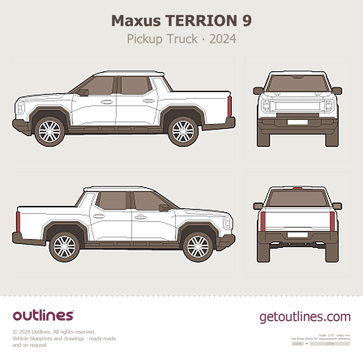 Buy this Maxus TERRION 9 blueprint and line drawing in high-quality editable vector file formats. Best for 3D and car wrap design.