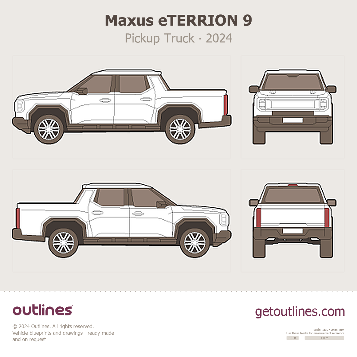Buy this Maxus eTERRION 9 blueprint and line drawing in high-quality editable vector file formats. Best for 3D and car wrap design.