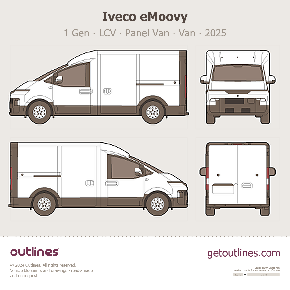 Buy this Iveco eMoovy 1 Gen blueprint and line drawing in high-quality editable vector file formats. Best for 3D and car wrap design.
