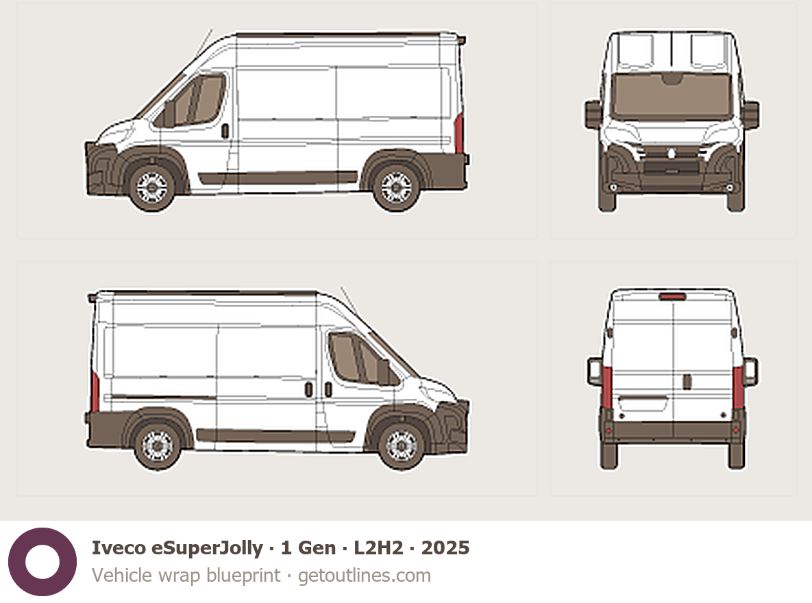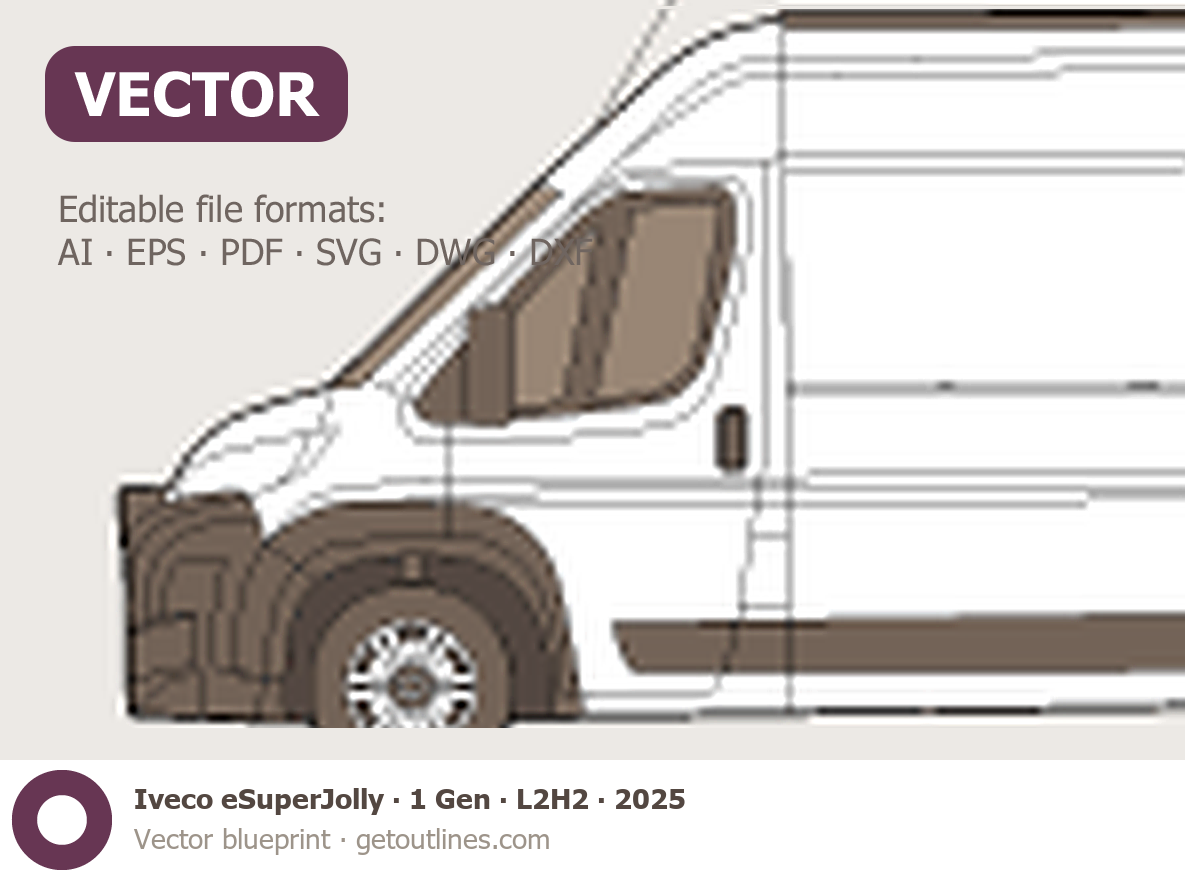 Buy this Iveco eSuperJolly 1 Gen blueprint and line drawing in high-quality editable vector file formats. Best for 3D and car wrap design.