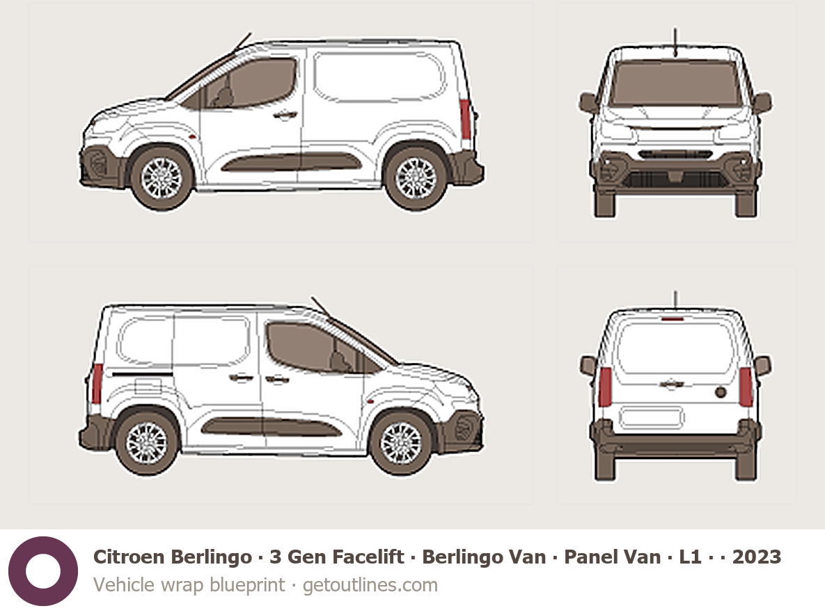 Buy this Citroen Berlingo 3 Gen Facelift blueprint and line drawing in high-quality editable vector file formats. Best for 3D and car wrap design.