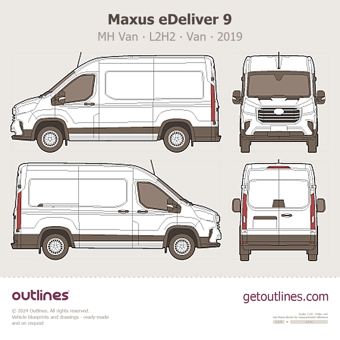 This 2019 Maxus eDeliver 9 MH Van ∙ L2H2 Van blueprint helps designers, wrap studios, and 3D artists simplify their workflow and save valuable time for creative work instead of routine tasks.