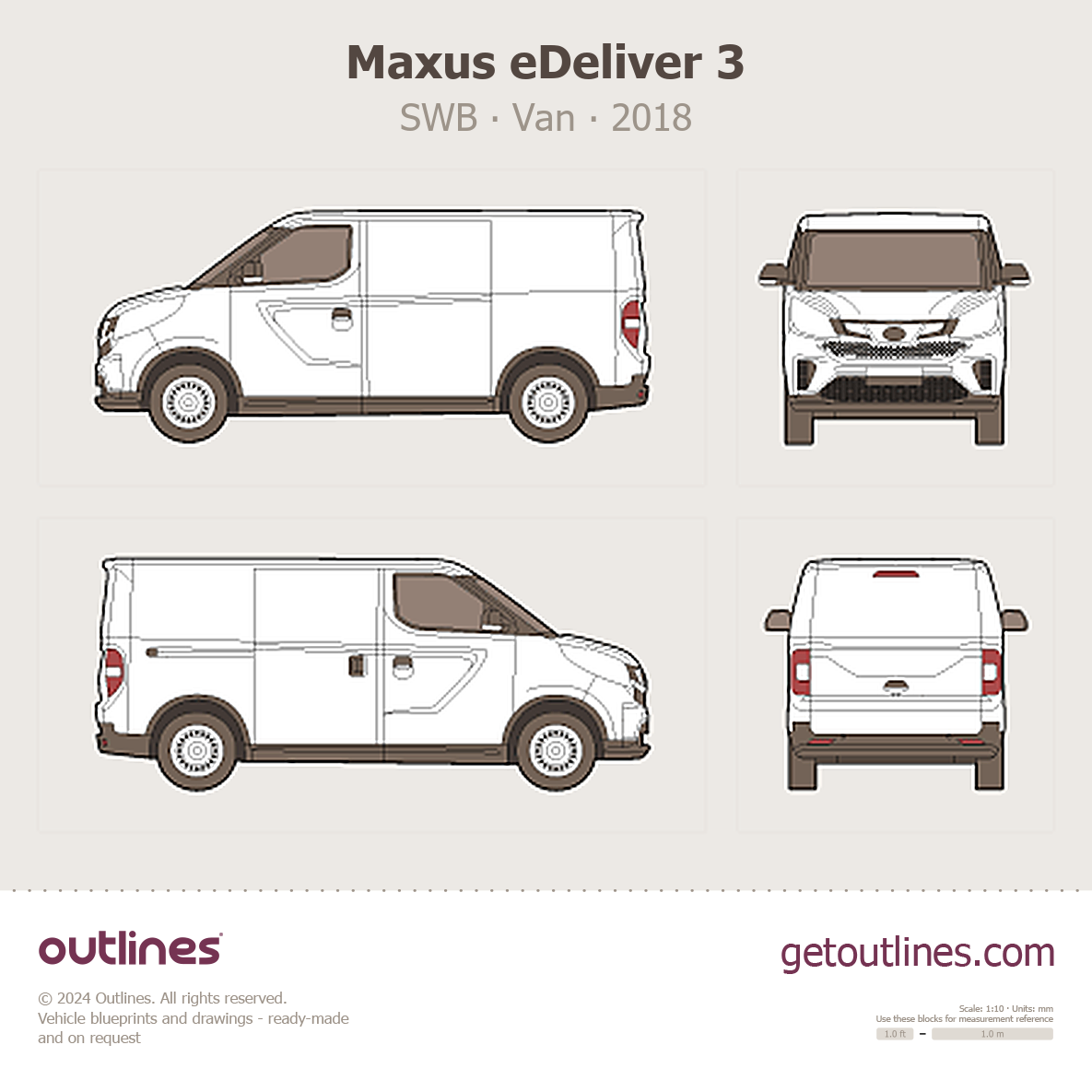 This 2018 Maxus eDeliver 3 SWB Van blueprint helps designers, wrap studios, and 3D artists simplify their workflow and save valuable time for creative work instead of routine tasks.