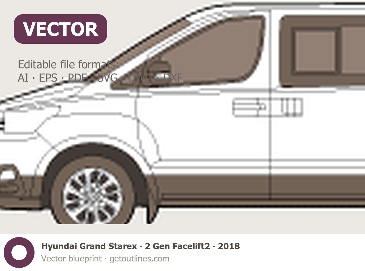 This 2018 Hyundai Grand Starex 2 Gen Facelift2 Wagon blueprint helps designers, wrap studios, and 3D artists simplify their workflow and save valuable time for creative work instead of routine tasks.