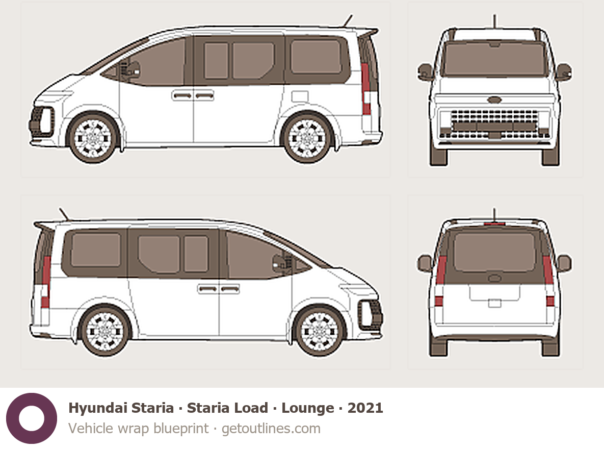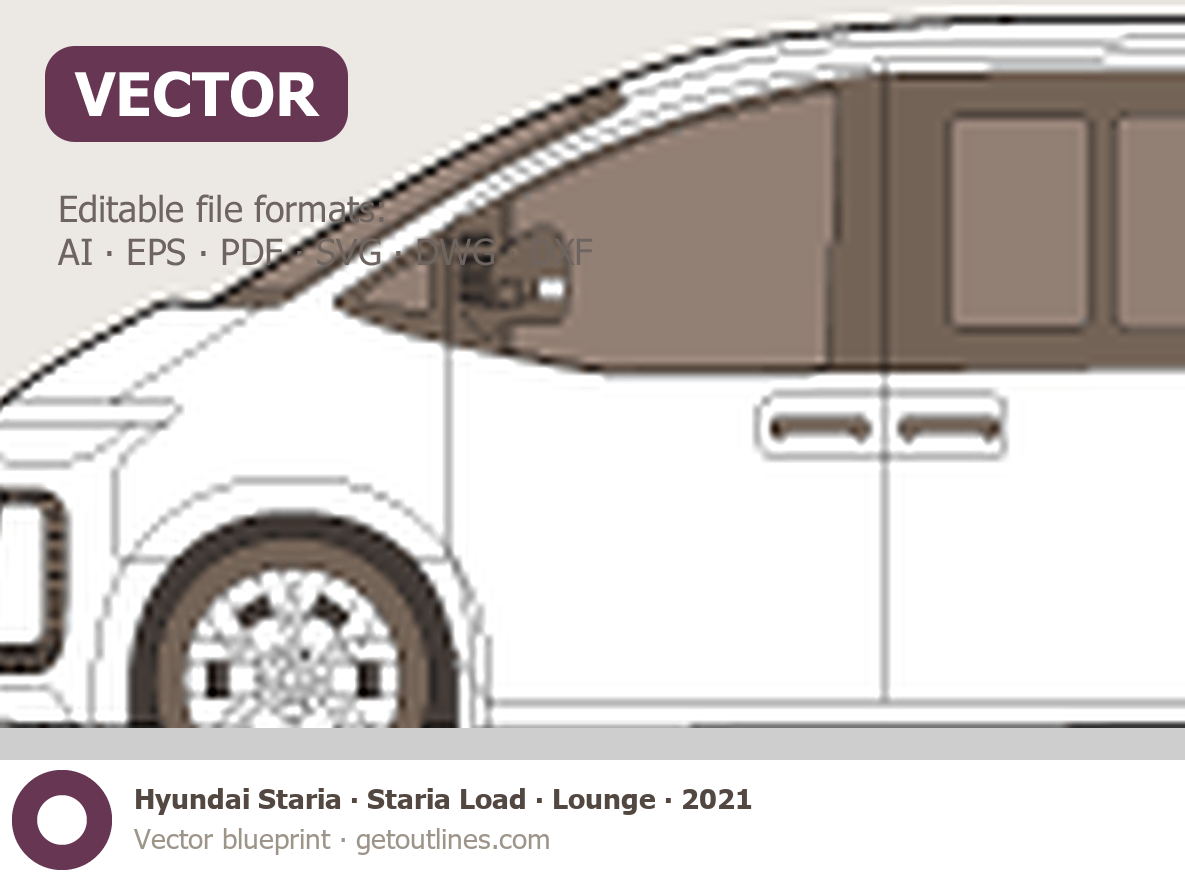 Buy this Hyundai Staria blueprint and line drawing in high-quality editable vector file formats. Best for 3D and car wrap design.