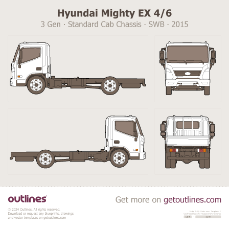 2015 Hyundai Mighty EX 3 Gen ∙ WQ ∙ EX 4/6 Standard Cab ∙ Chassis ∙ SWB Heavy Truck blueprint