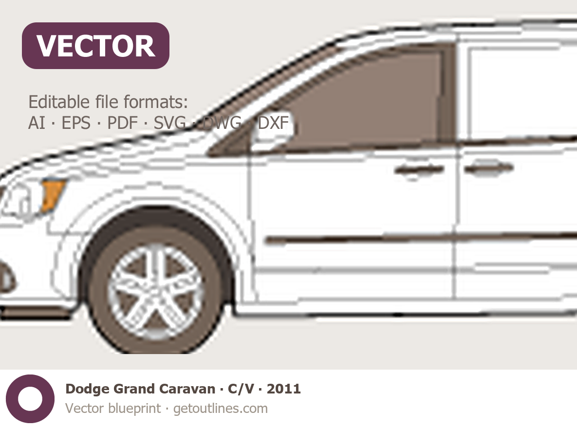 Buy this Dodge Grand Caravan blueprint and line drawing in high-quality editable vector file formats. Best for 3D and car wrap design.