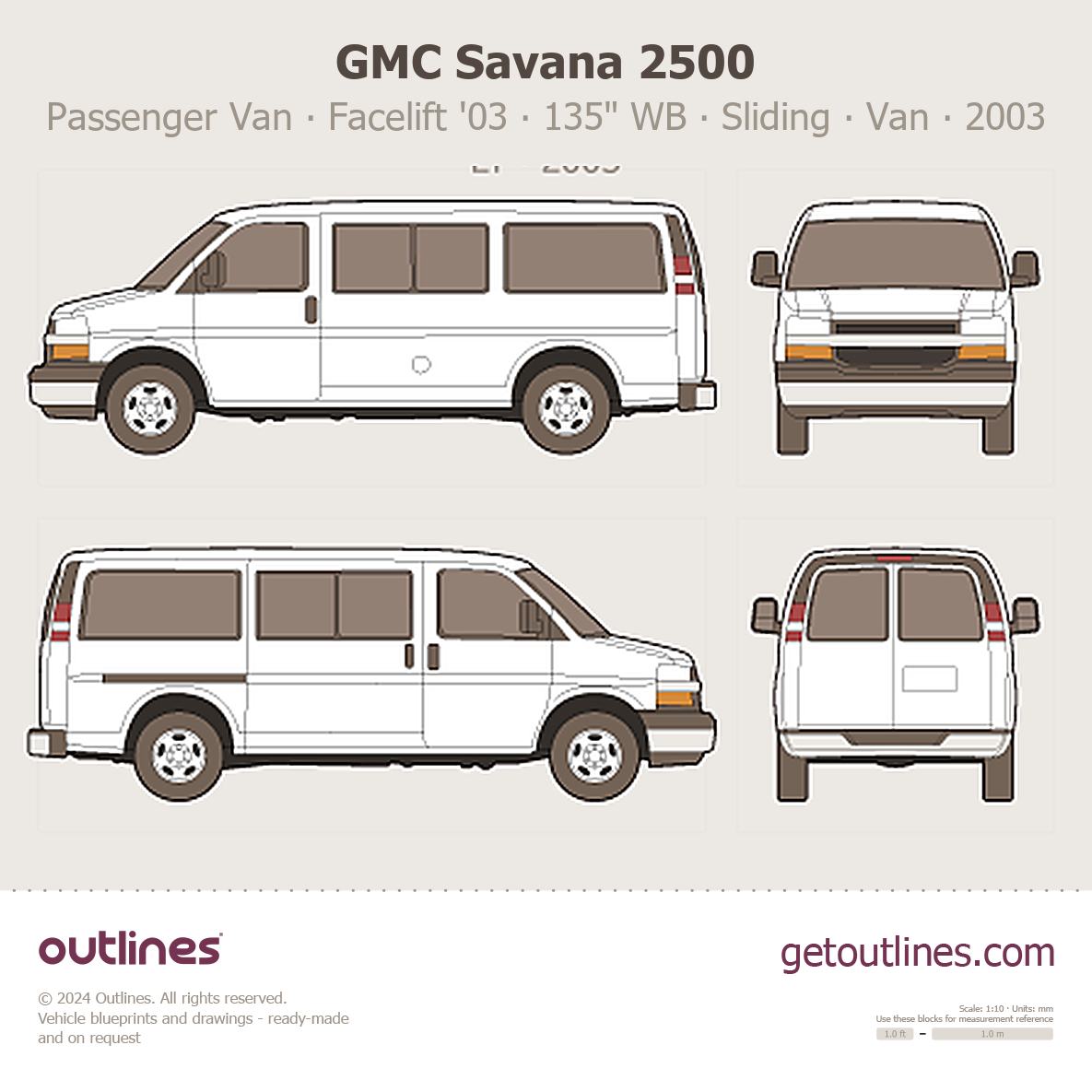 2003 GMC Savana 2500 Passenger Van ∙ Facelift '03 RWB Regular  ∙ Sliding Door ∙ LS ∙ WT ∙ G2500 Van blueprint