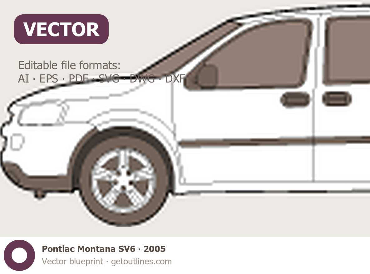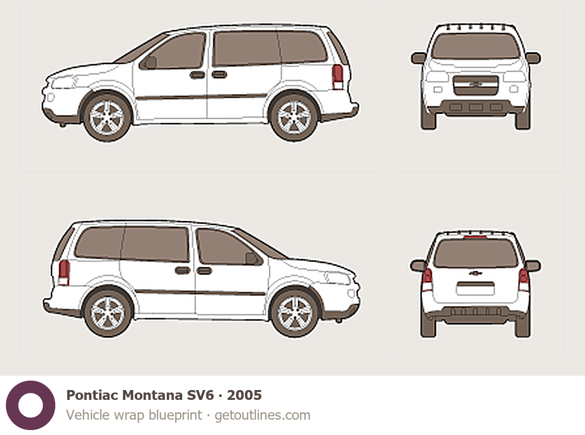 Buy this Pontiac Montana SV6 blueprint and line drawing in high-quality editable vector file formats. Best for 3D and car wrap design.