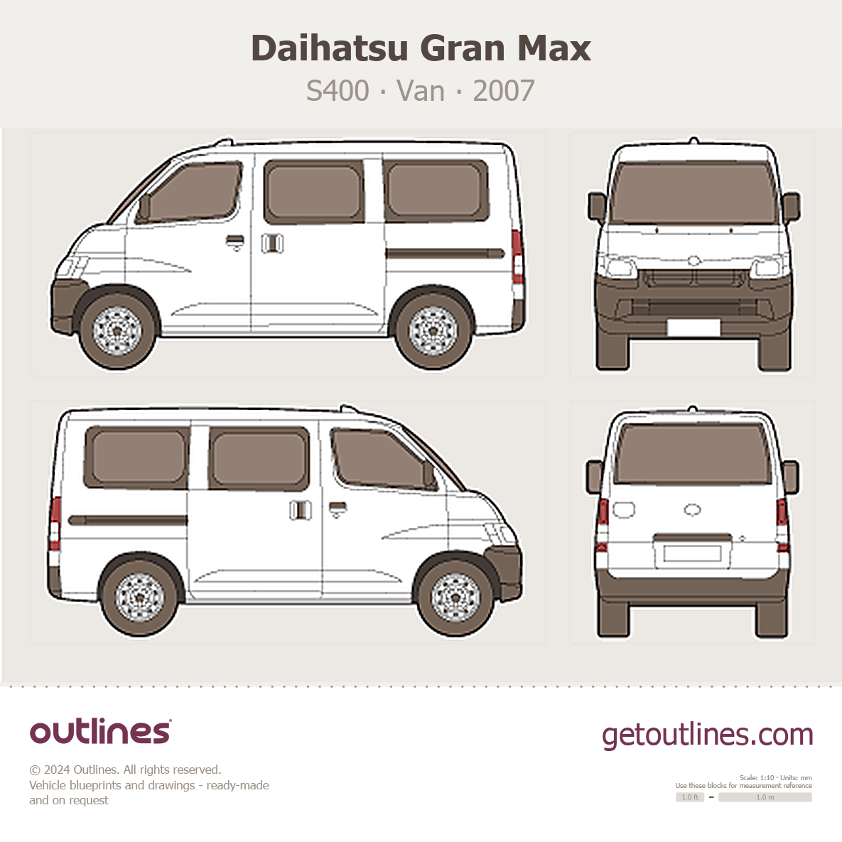 This 2007 Daihatsu Gran Max S400 Van blueprint helps designers, wrap studios, and 3D artists simplify their workflow and save valuable time for creative work instead of routine tasks.
